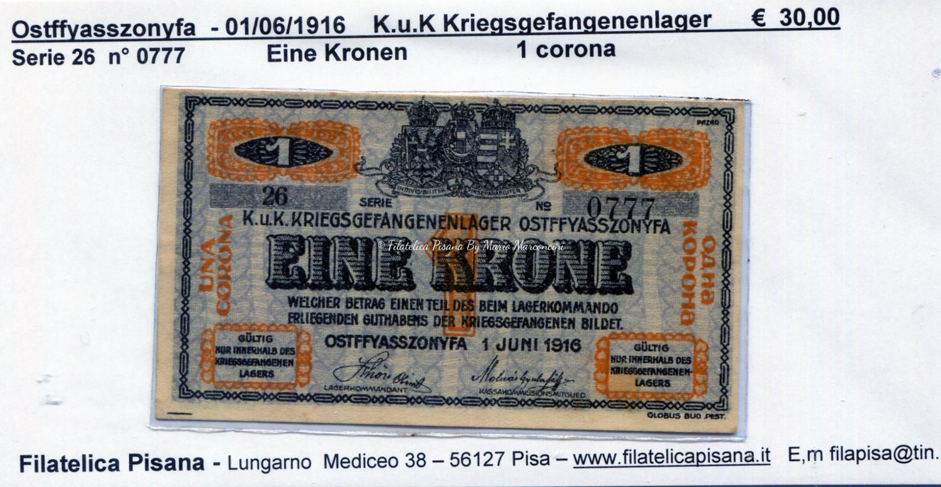 Banconota Lager K.u.K. Kriegsgefangenenlager Ostffysszonyfa 1916 – Corona 1