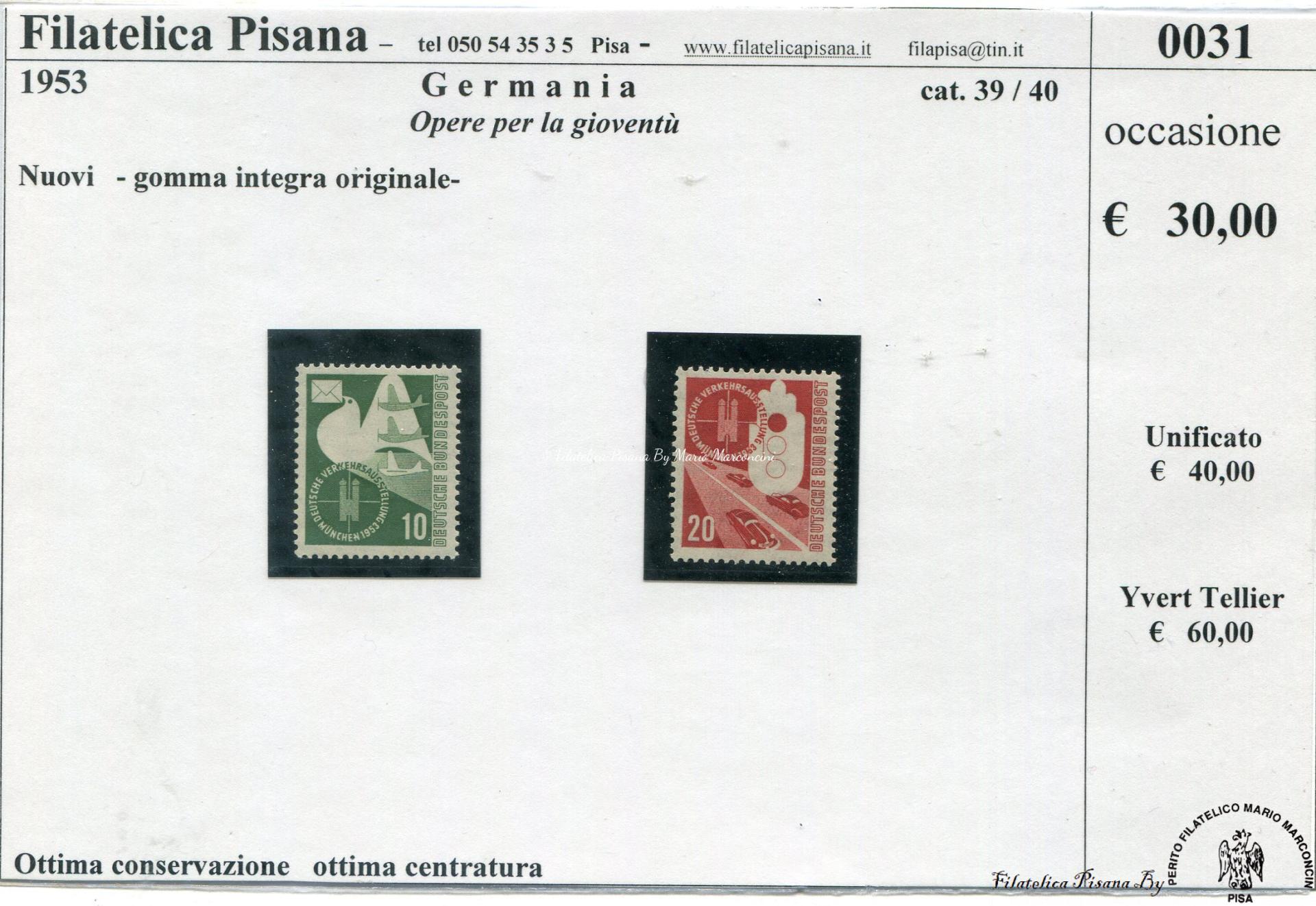 1 Francobolli Germania – Anno 1953 Pro Juventute