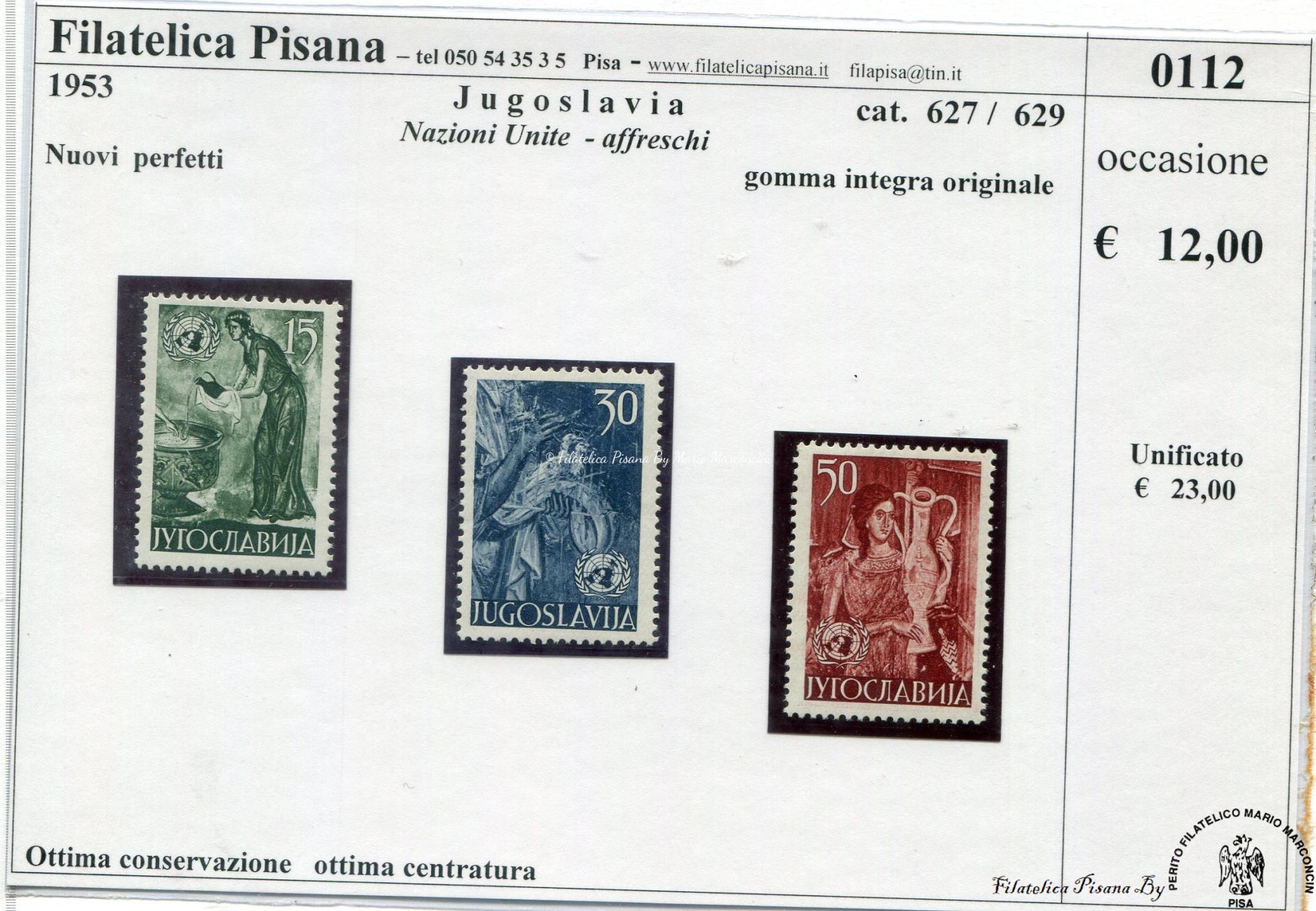 Jugoslavia  1953  Nazioni Unite  627/629  affreschi  catalogo  €  23,00