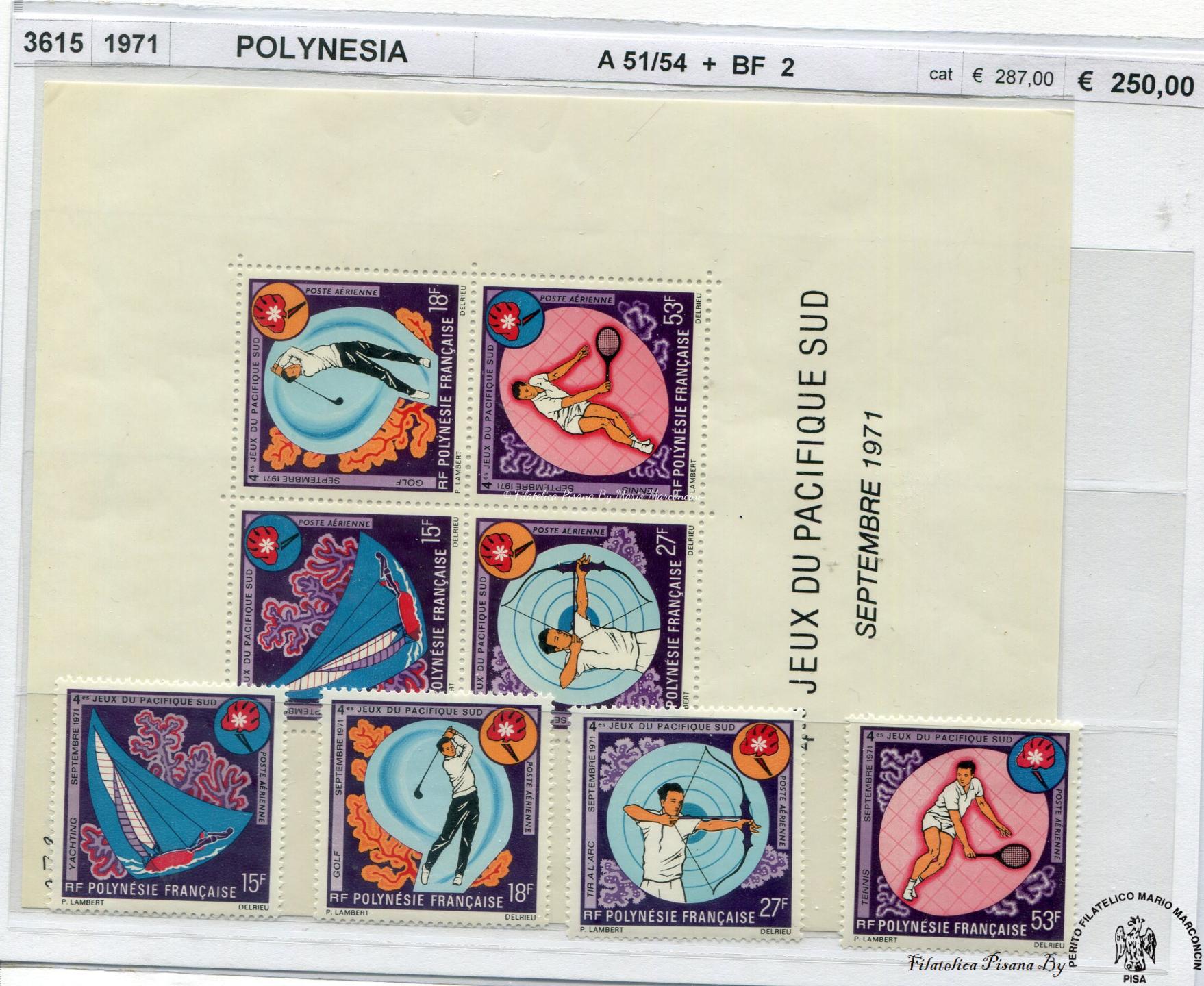 Polinesia – Giochi del Sud Pacifico  pa 51/54 e bf 2  non comune   catalogo  €  287,00