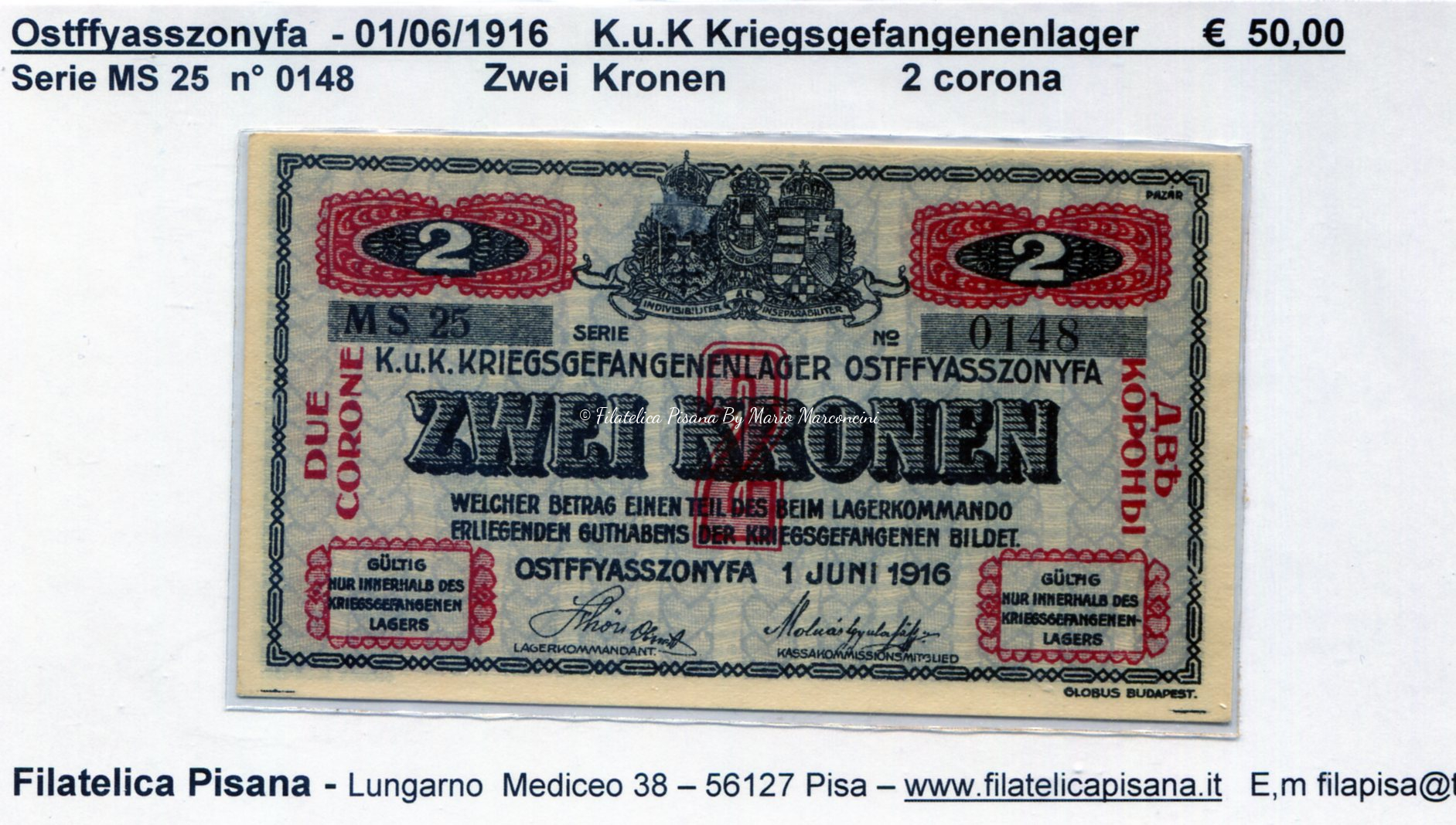 Banconota Lager K.u.K. Kriegsgefangenenlager Ostffysszonyfa Corone 2 – anno 1916