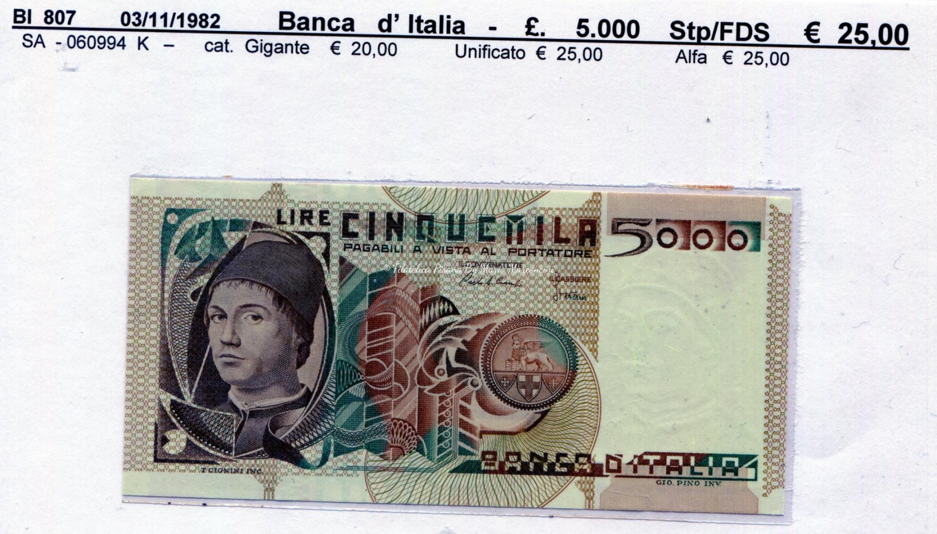 Banconota Banca d’Italia – data 03/11/1982 Lire 5.000