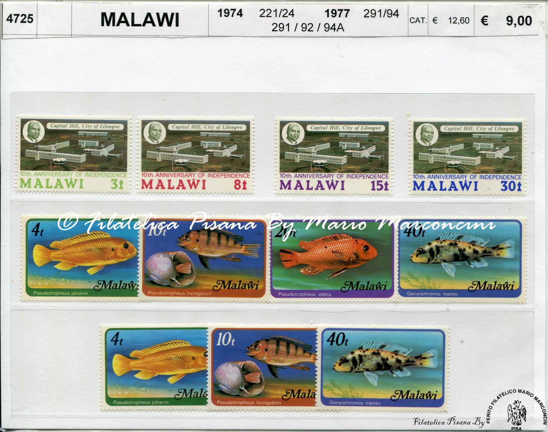 Francobolli nuovi di Malawi, anni 1974 e 1977