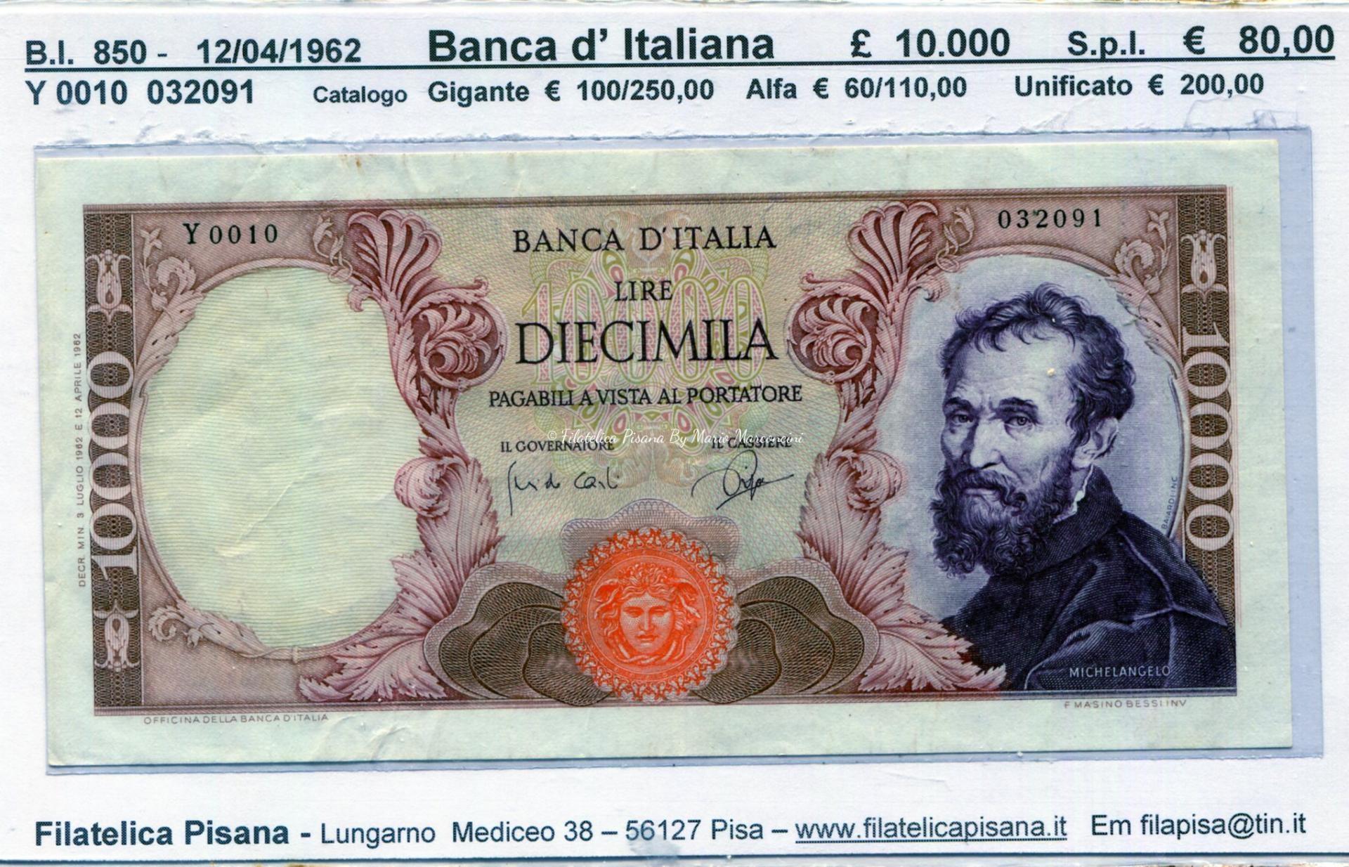 Banconota Italia – data 12/04/1962 – Lire 10.000