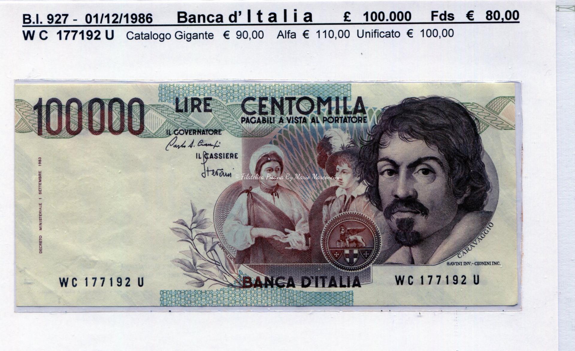 Banconota Italia – Banca d’Italia – data 01/12/1986 – Lire 100.000