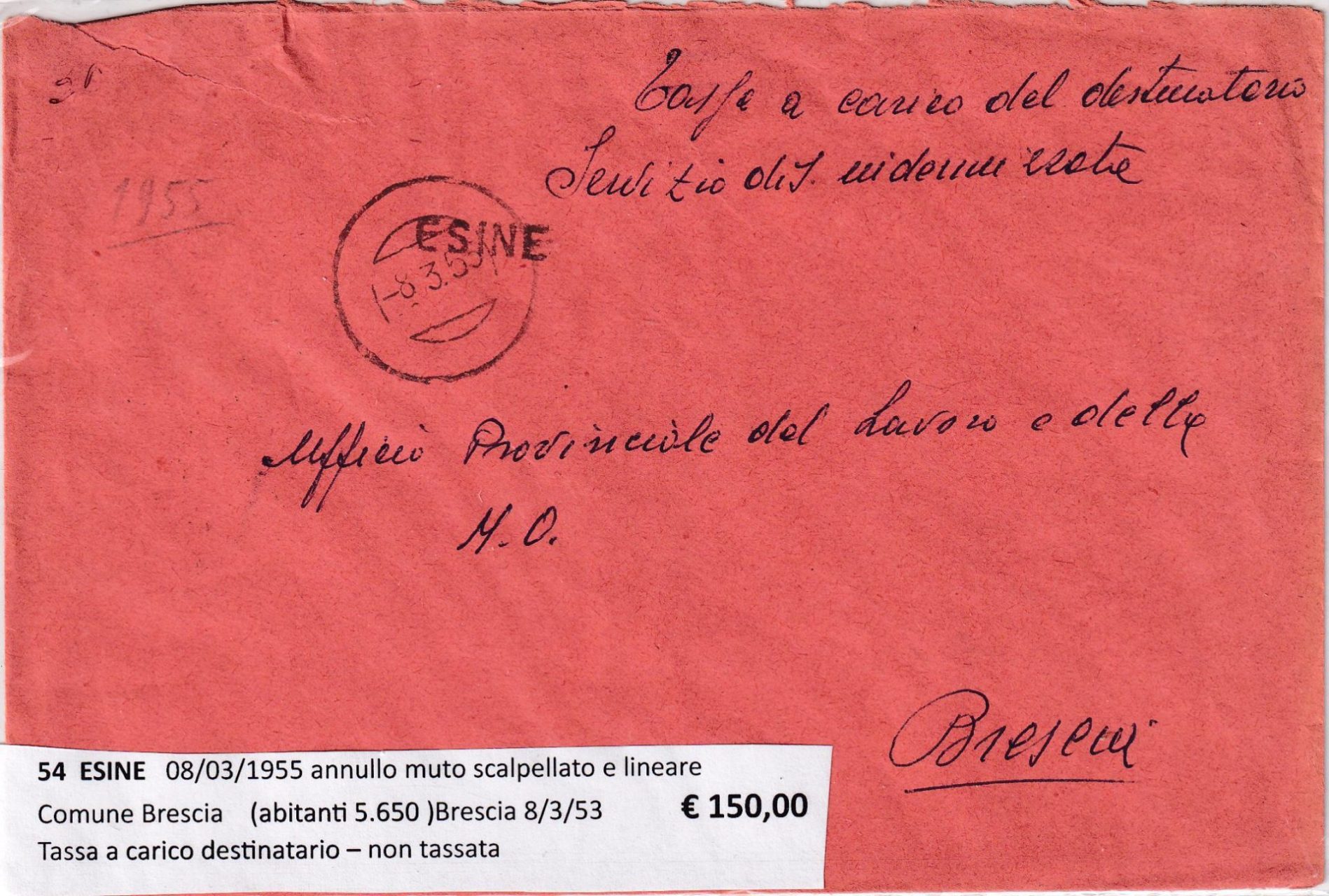 Da ESINE Comune Brescia (abitanti 5.650 ) (08/03/1955) a Brescia (08/03/1953)