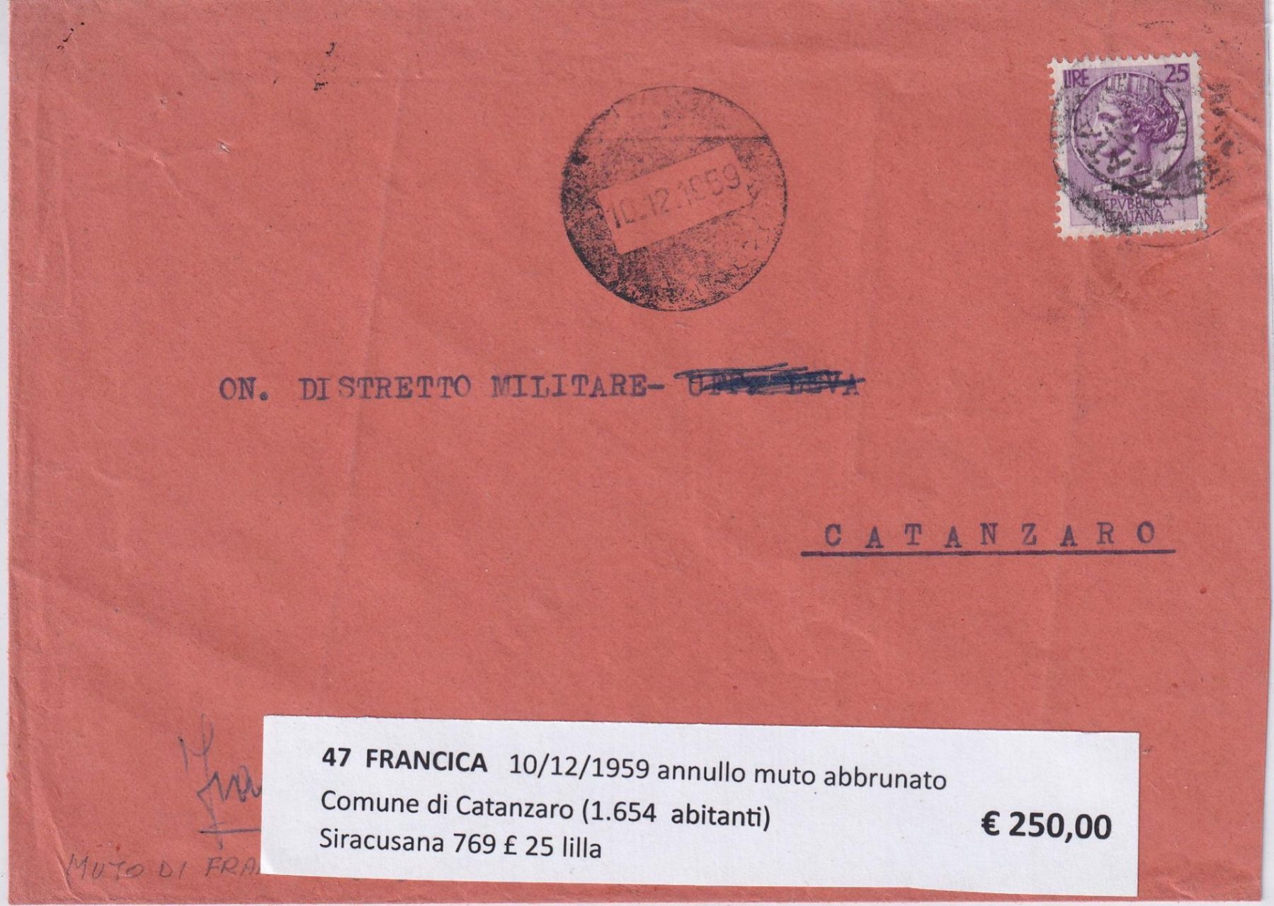 Da FRANCICA Comune di Catanzaro (1.654 abitanti) (10/12/1959)