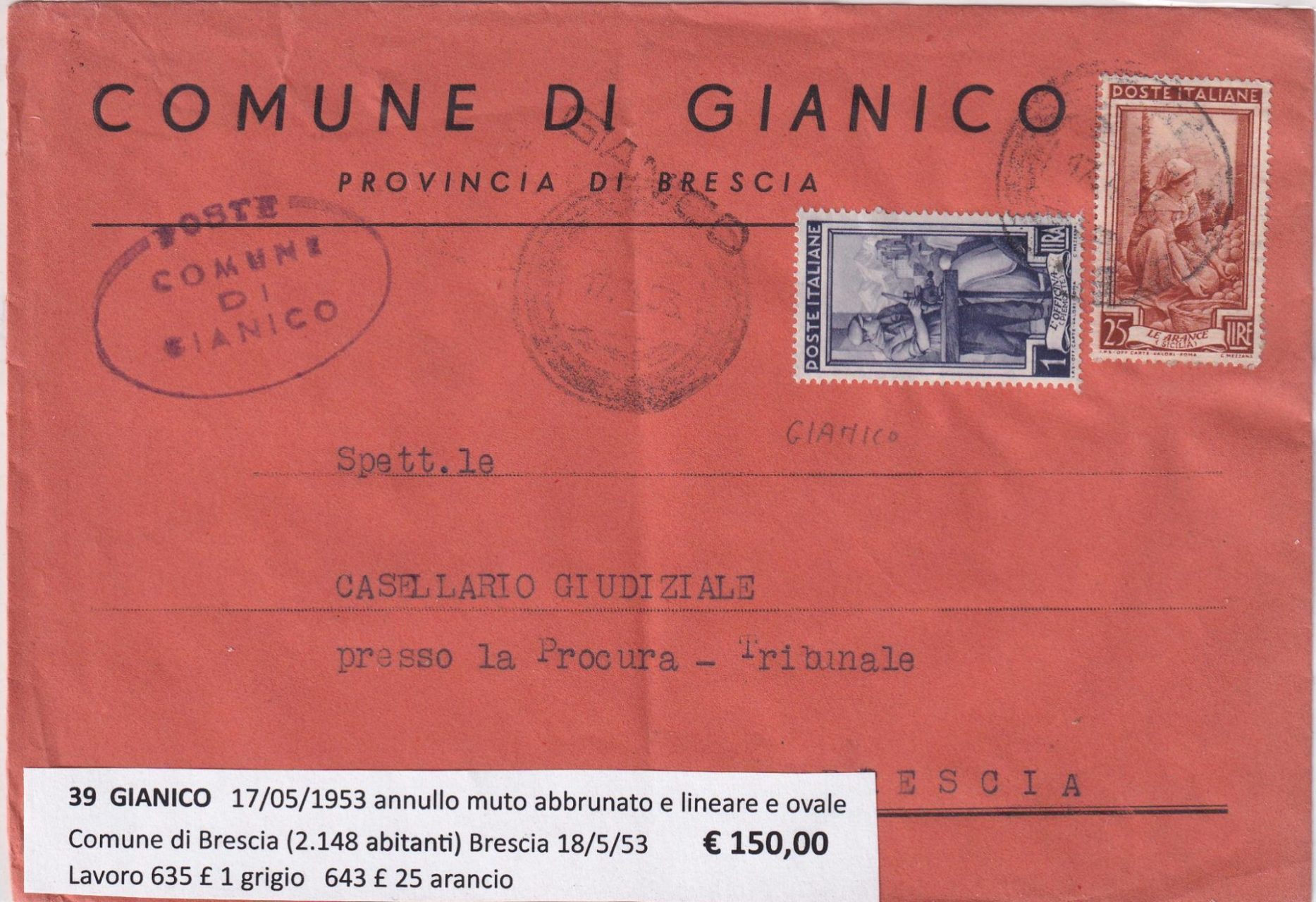 Da GIANICO Comune di Brescia (2.148 abitanti) (17/05/1953) a Brescia (18/05/1953)