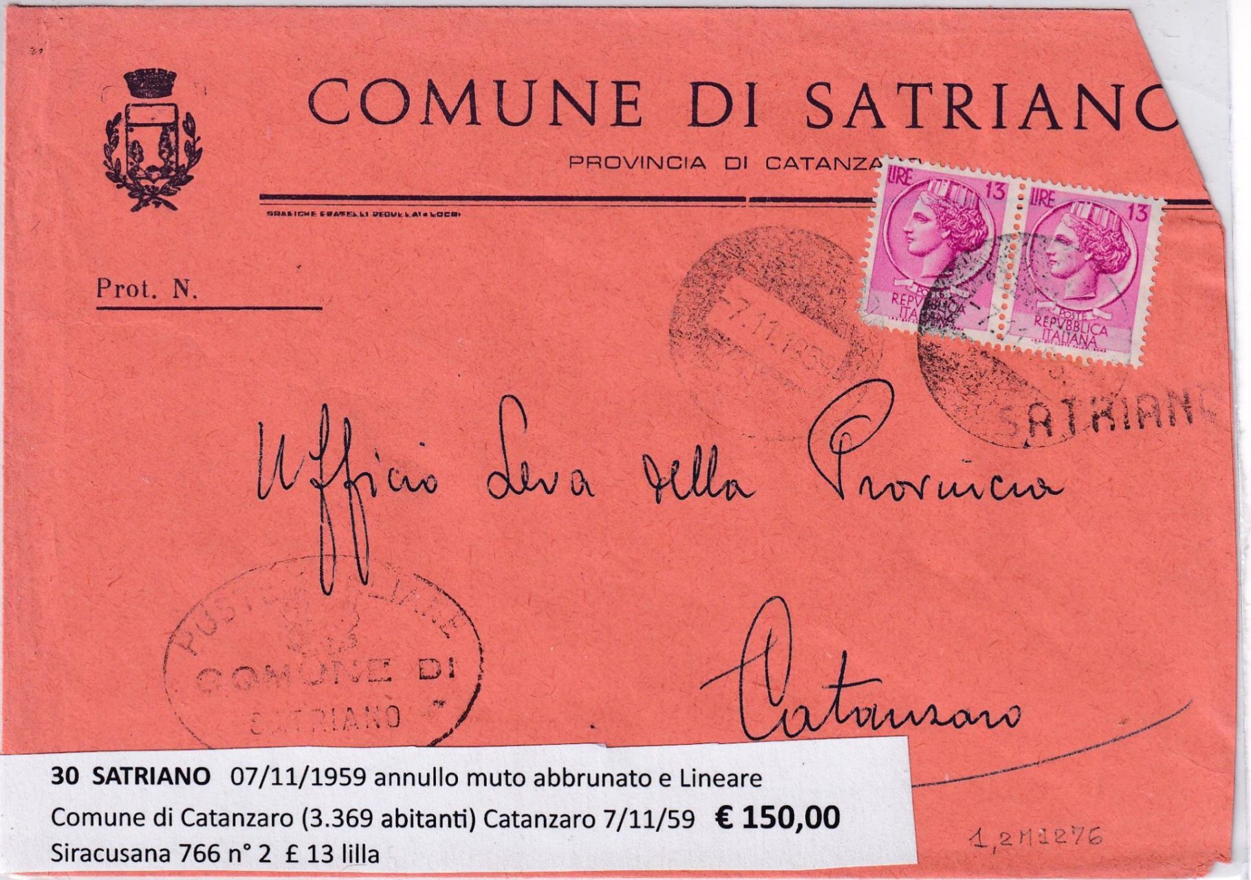 Da SATRIANO Comune di Catanzaro (3.369 abitanti) (07/11/1959) a Catanzaro (07/11/1959)