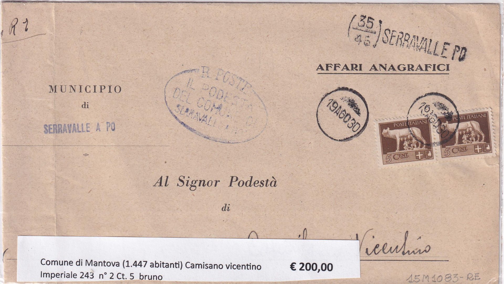 Francobolli Serie Imperiale (cat. n. 243) Centesimi 5 bruno