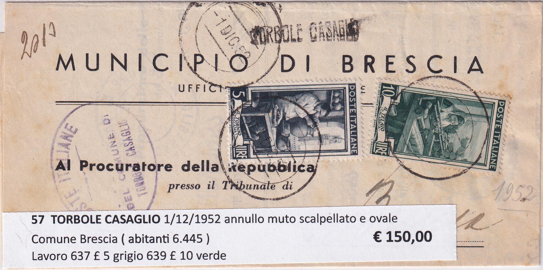 Da TORBOLE CASAGLIO Comune Brescia (abitanti 6.445) (01/12/1952) a Brescia