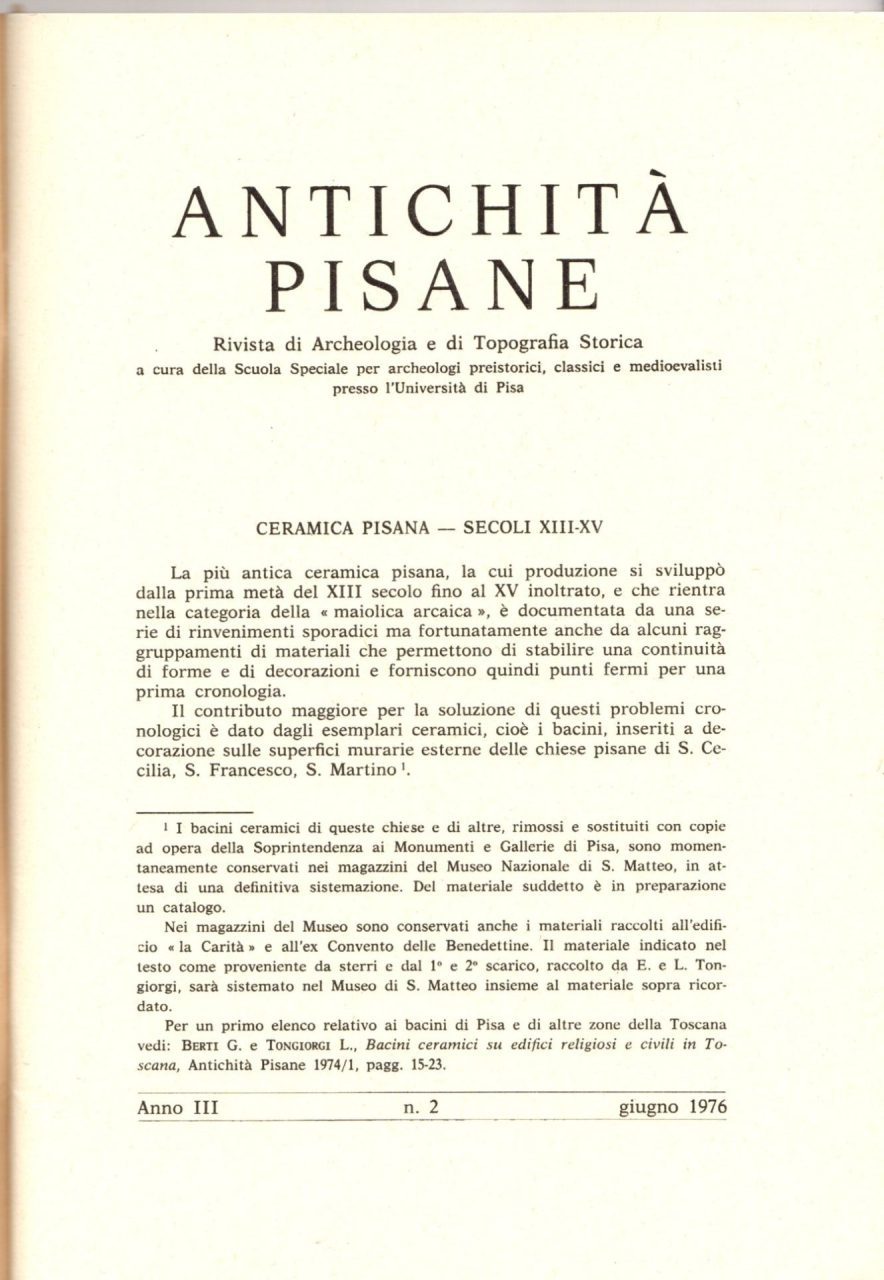 Antichità pisane n. 2 Anno 1976 – Rivista di Archeologia e Topografia Storica