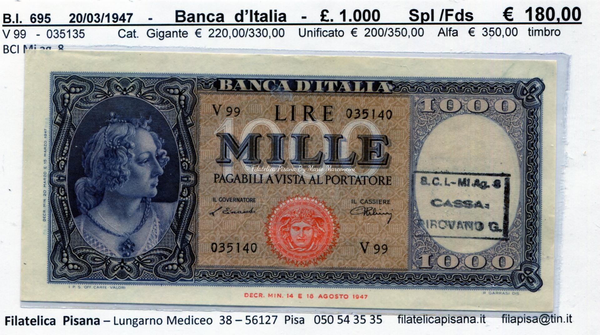 Banconota Banca d’Italia – Anno 1947 Lire 1.000