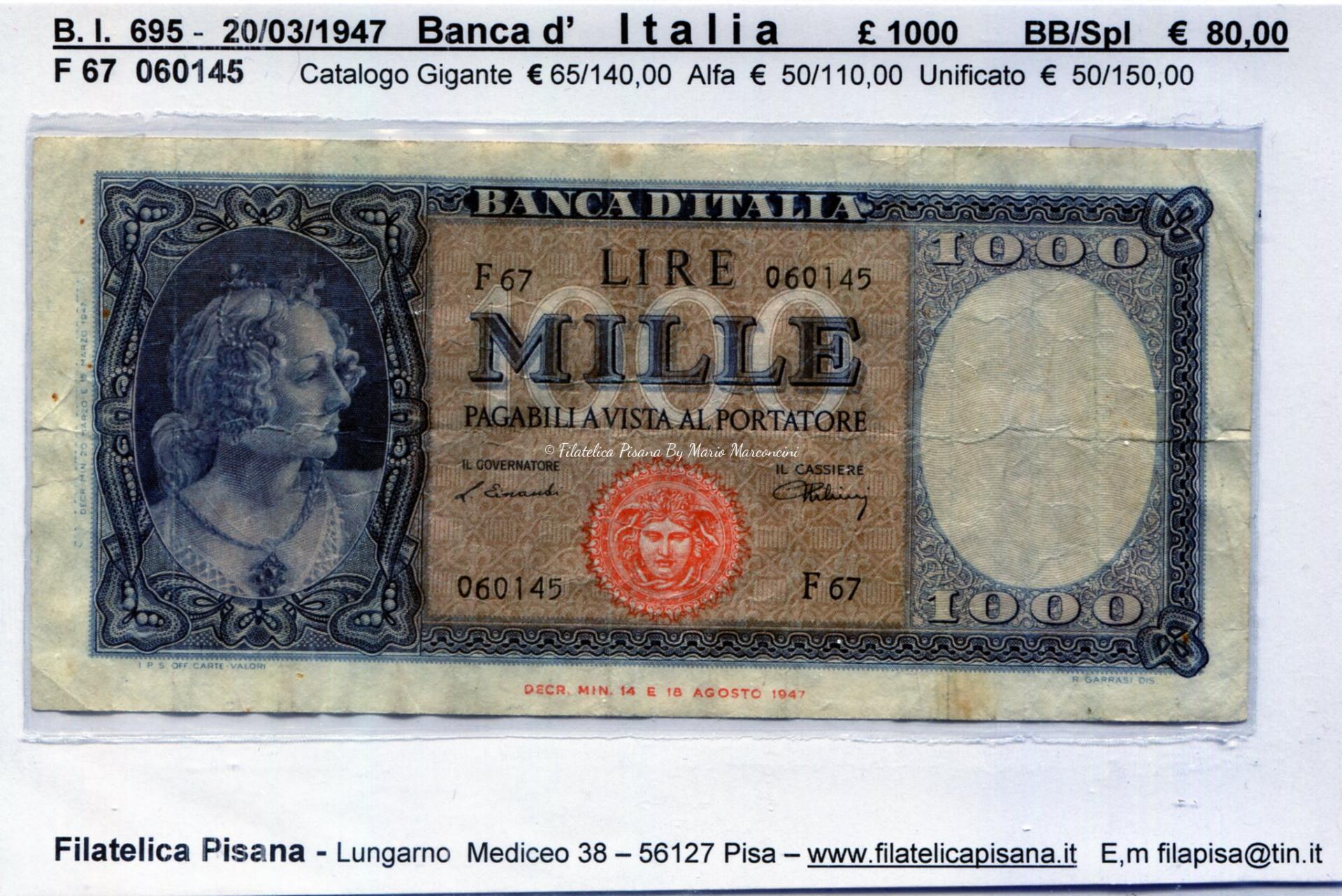 Banconota Banca d’Italia – Anno 1947 Lire 1.000