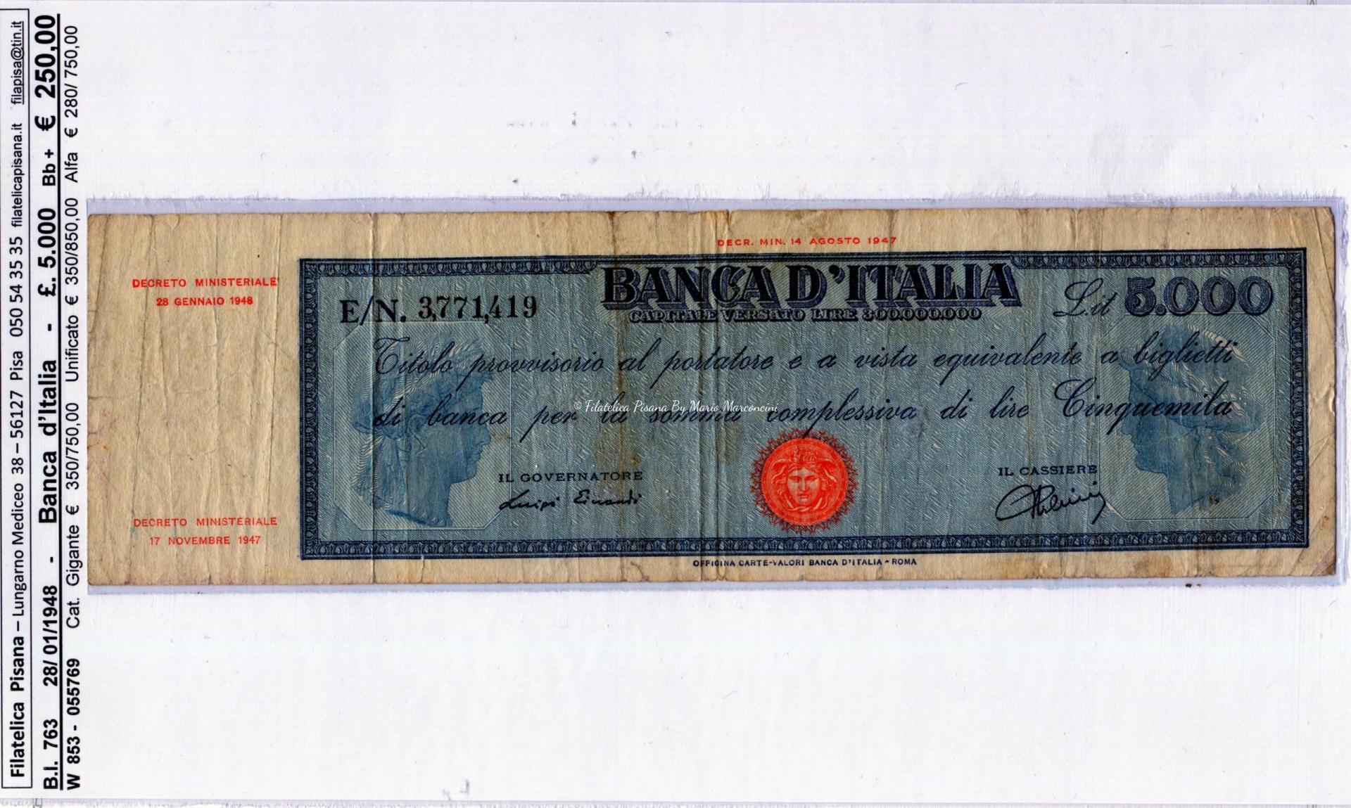 Banconota Banca d’Italia – Anno 1948 Lire 5.000
