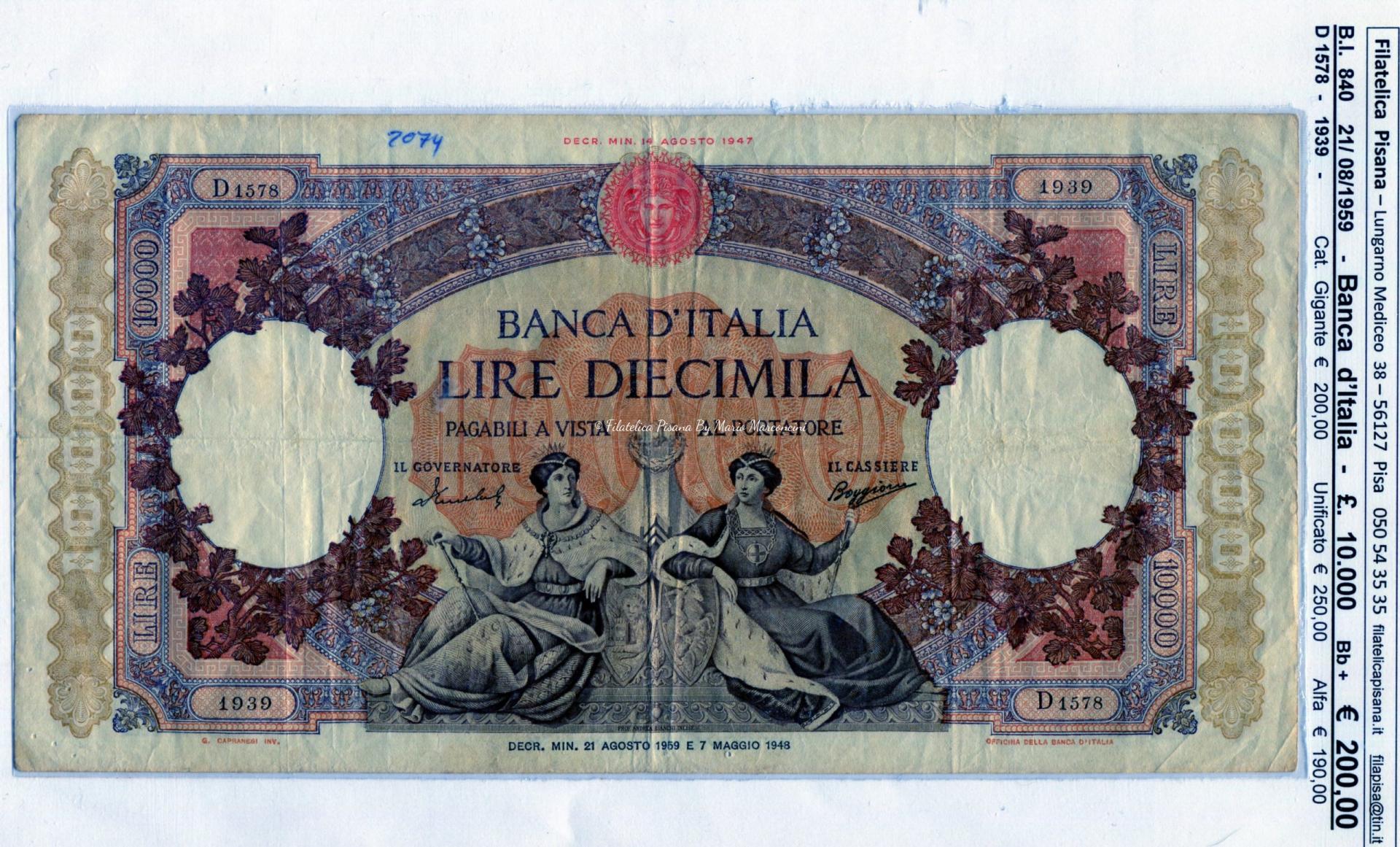 Banconota Banca d’Italia Lire 10.000