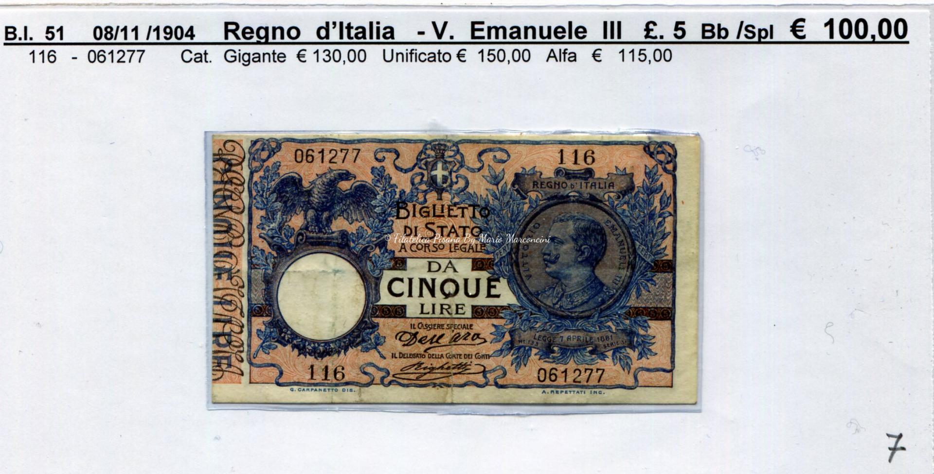 Biglietto di stato Regno d’Italia Vittorio Emanuele III Lire 5