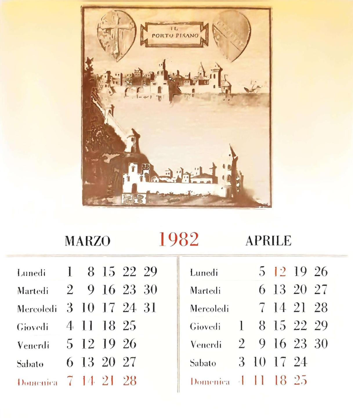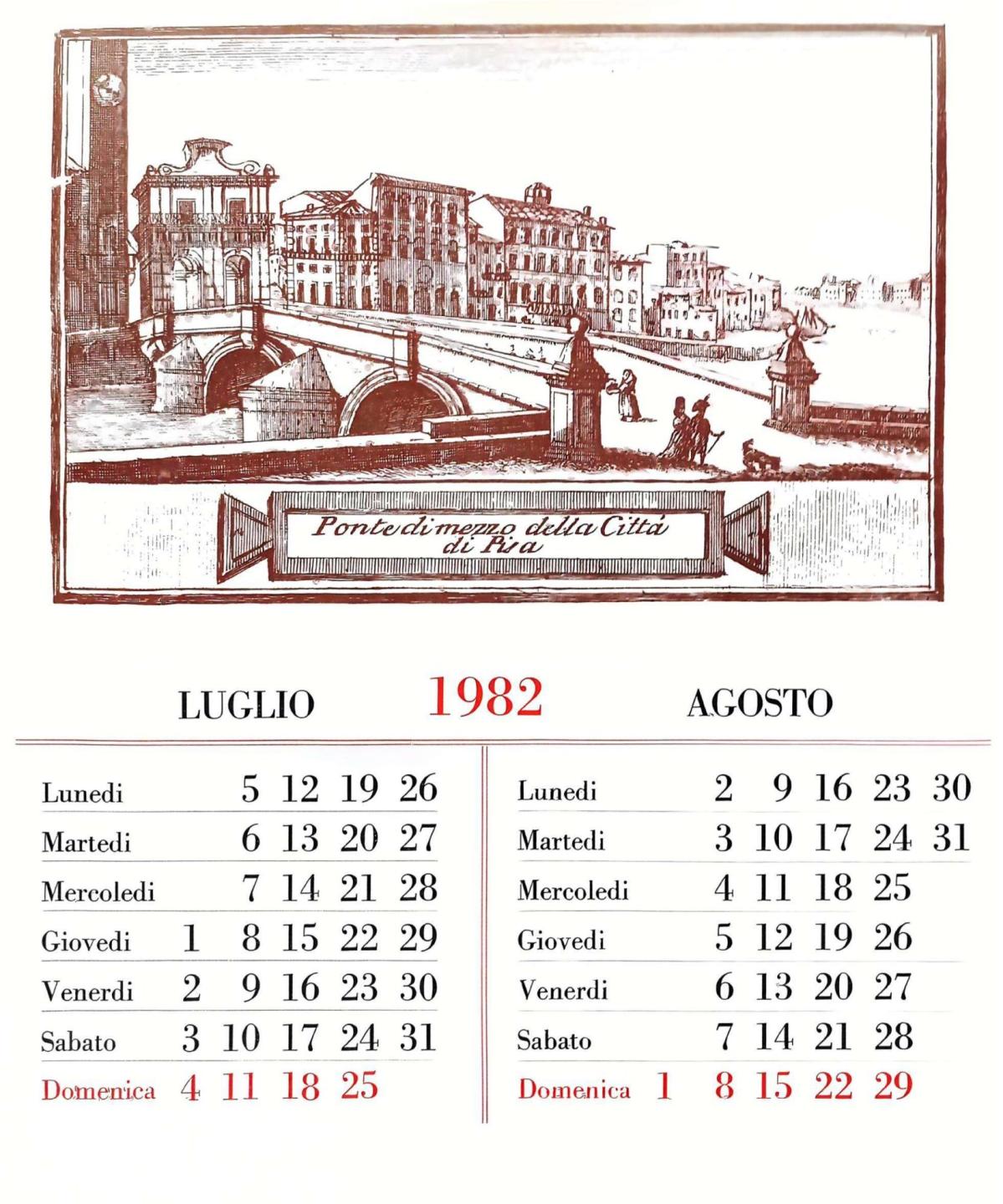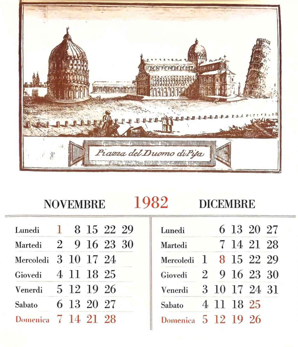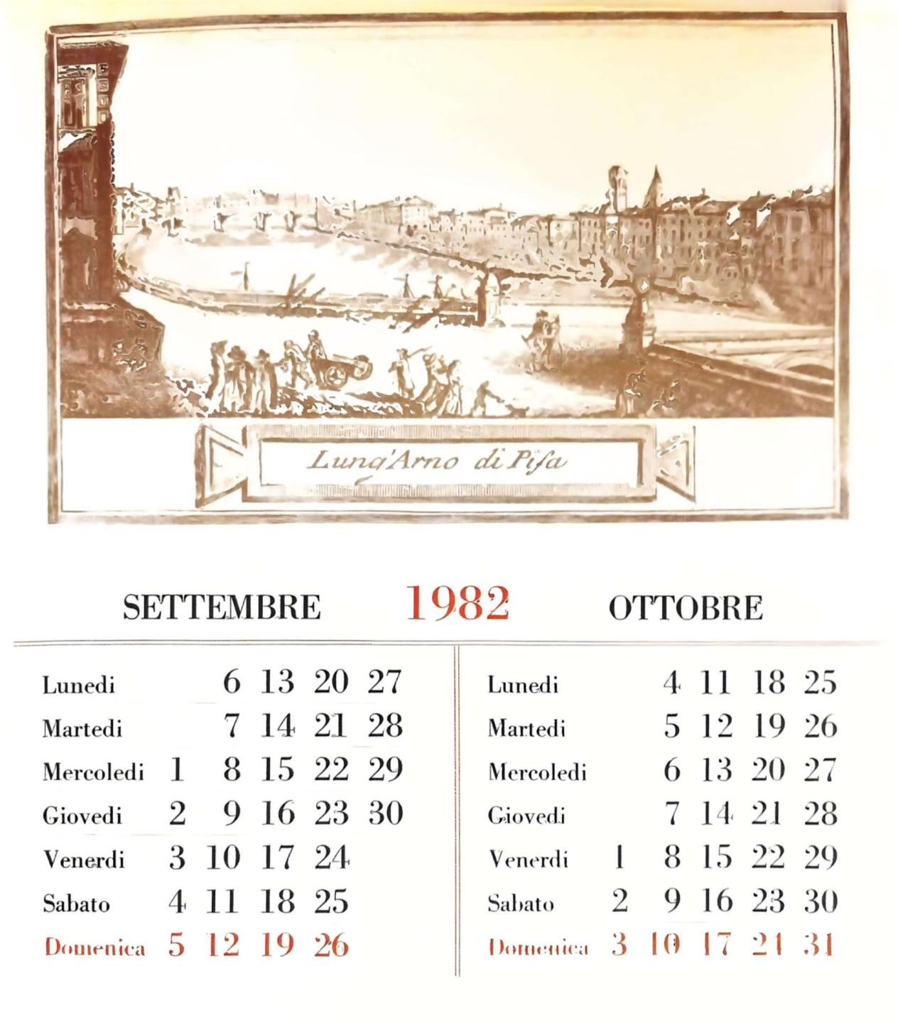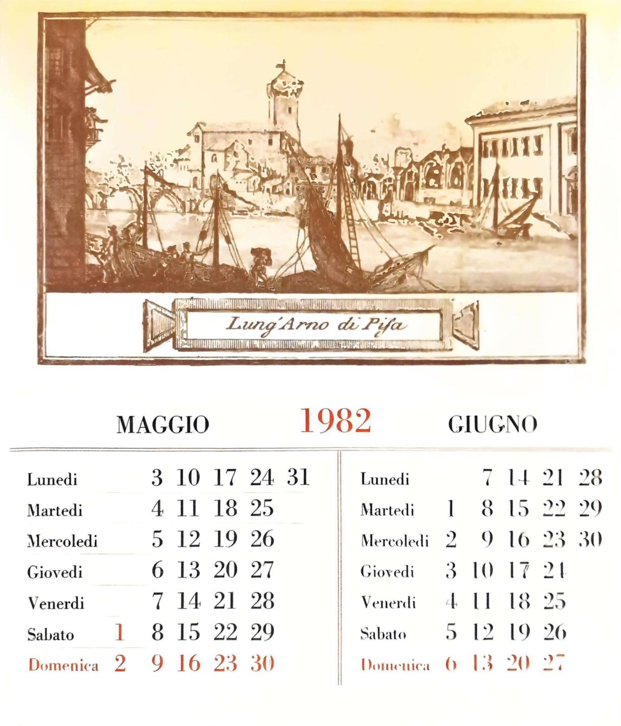 Calendario dell’anno 1982 con riproduzione di stampe d’epoca a tema Pisa