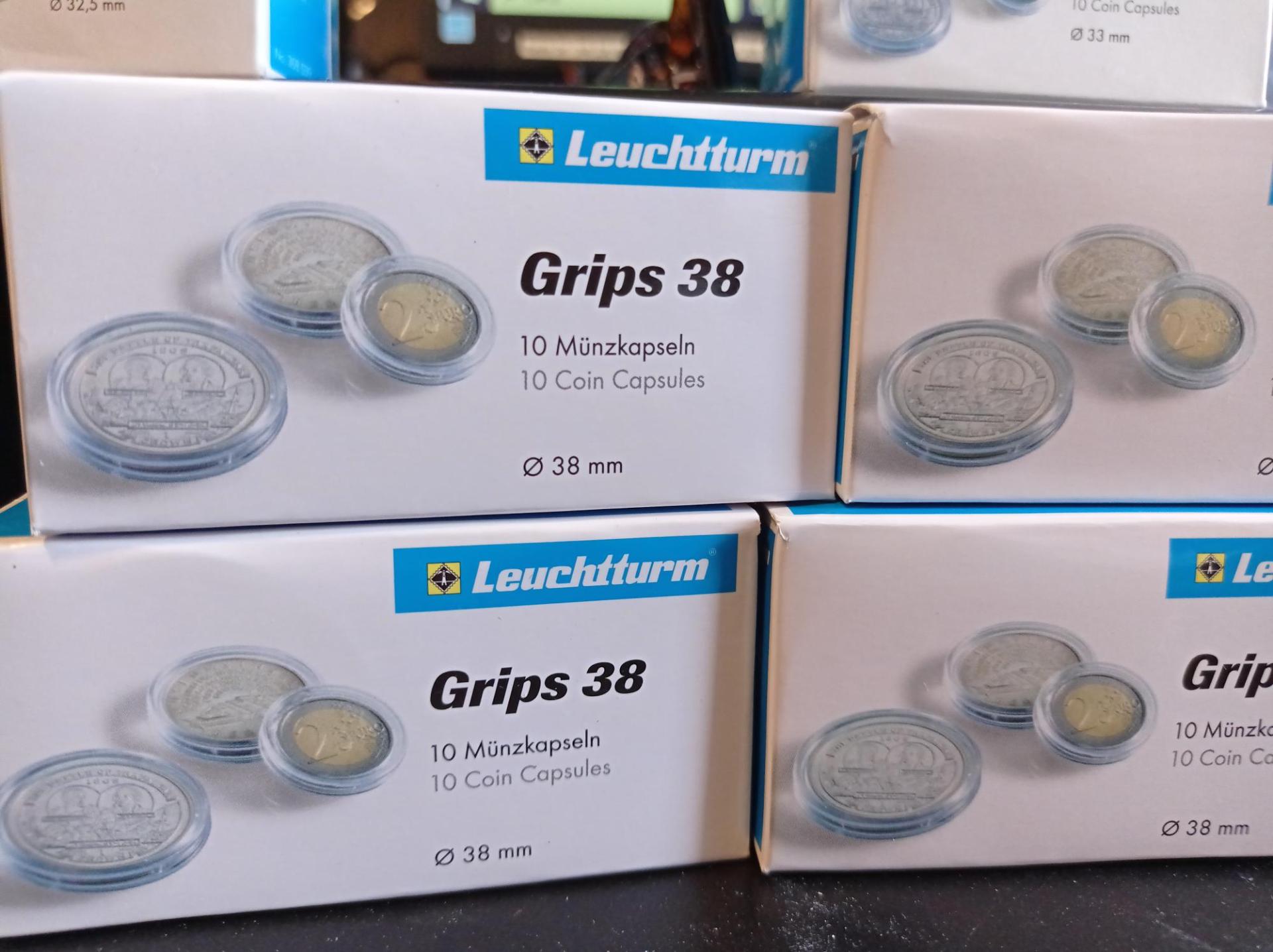 Capsule trasparenti per monete Leuchtturm Grips, Diametro 38 mm.
