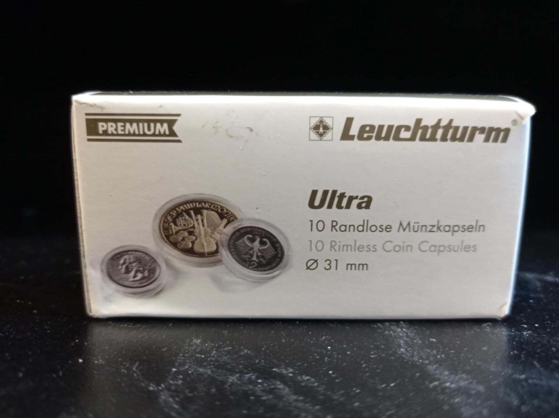 Capsule trasparenti per monete Leuchtturm Ultra, Diametro 31 mm.
