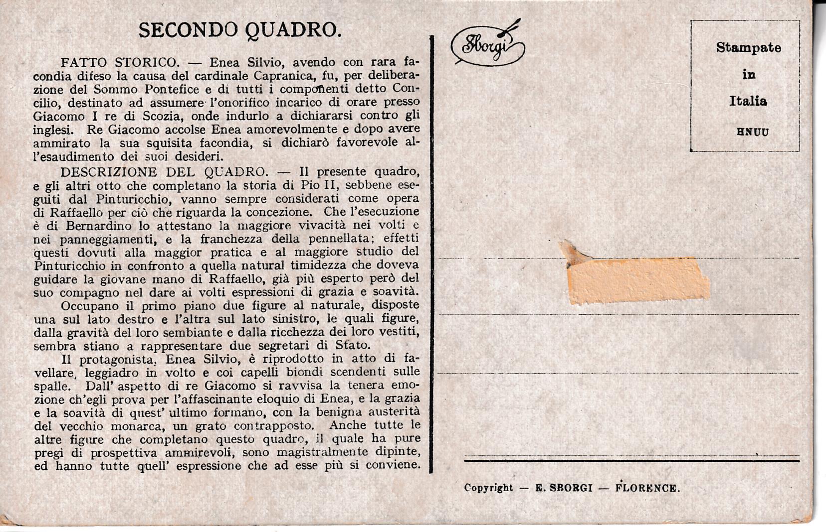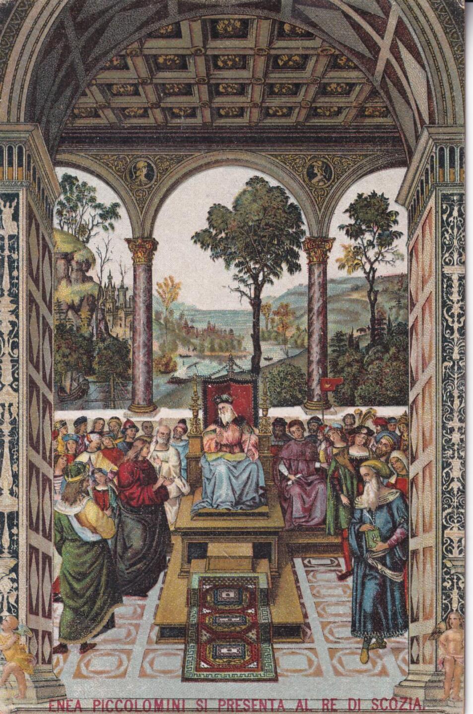 Cartolina d’epoca Serie Enea Piccolomini – Enea Piccolomini si presenta al Re di Scozia Secondo Quadro