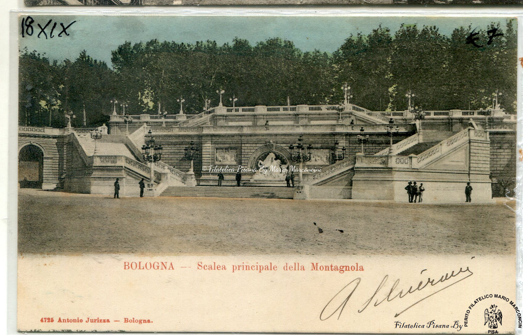Cartolina illustrata. Bologna – Scalea principale della Montagnola