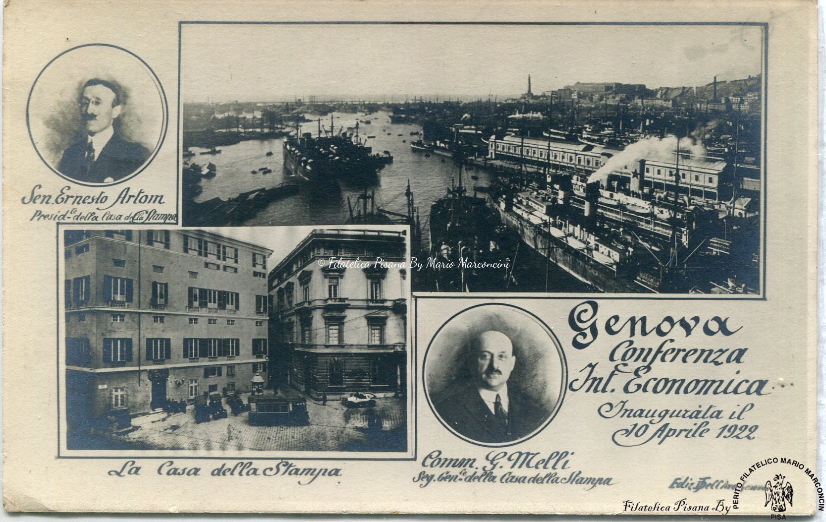 Cartolina illustrata commemorativa Genova Conferenza Int. Economica Inaugurata il 10 Aprile 1922. La Casa della Stampa