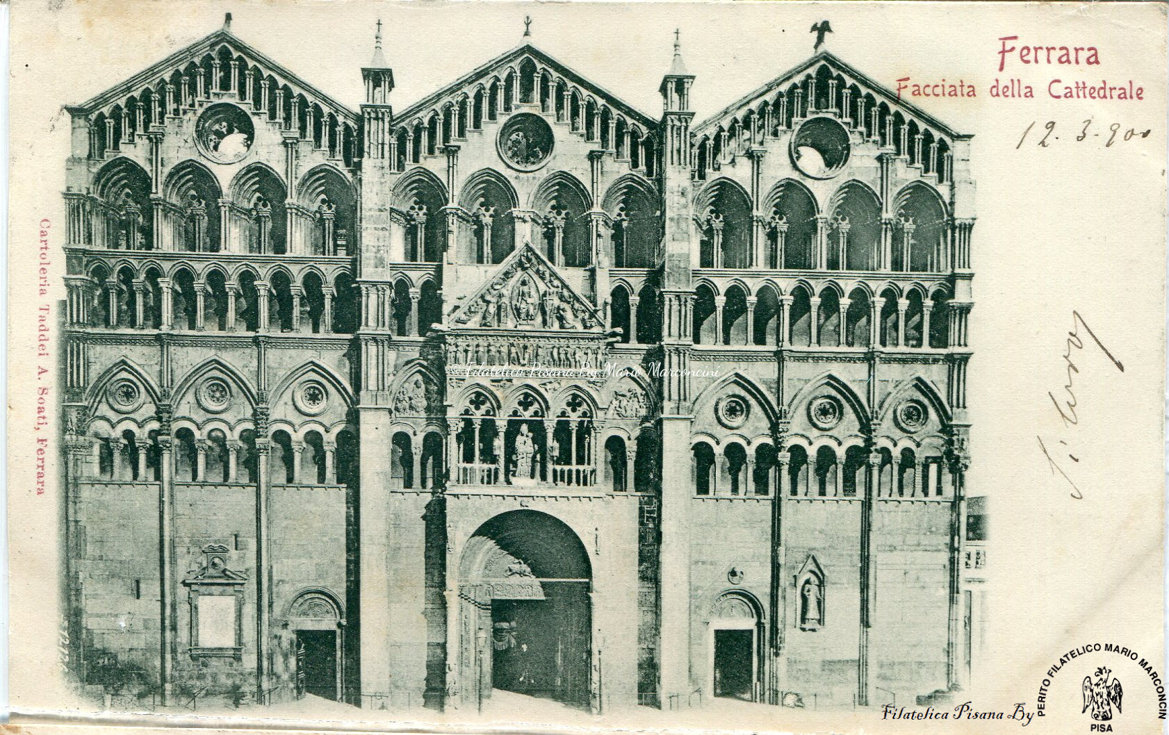 Cartolina illustrata Ferrara. Facciata della Cattedrale