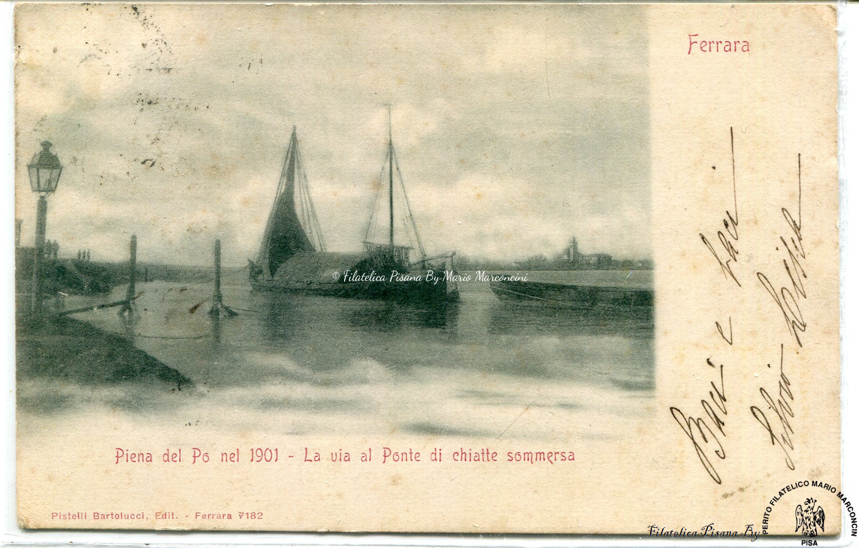 Ferrara. Piena del Po nel 1901 – La via al Ponte di chiatte sommersa