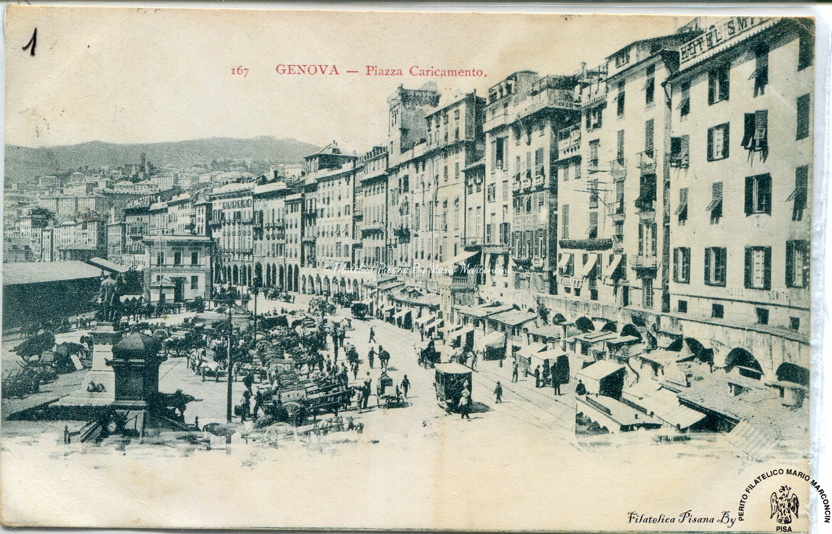 Cartolina illustrata Genova. Piazza Caricamento
