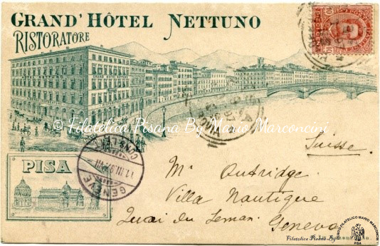 Lungarno Pacinotti e Ponte di Mezzo : rara pubblicità per l’epoca