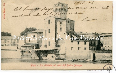 Cartolina illustrata – Pisa, la Cittadella vista dall’Arno – XIX secolo  spedita 18/4/1904