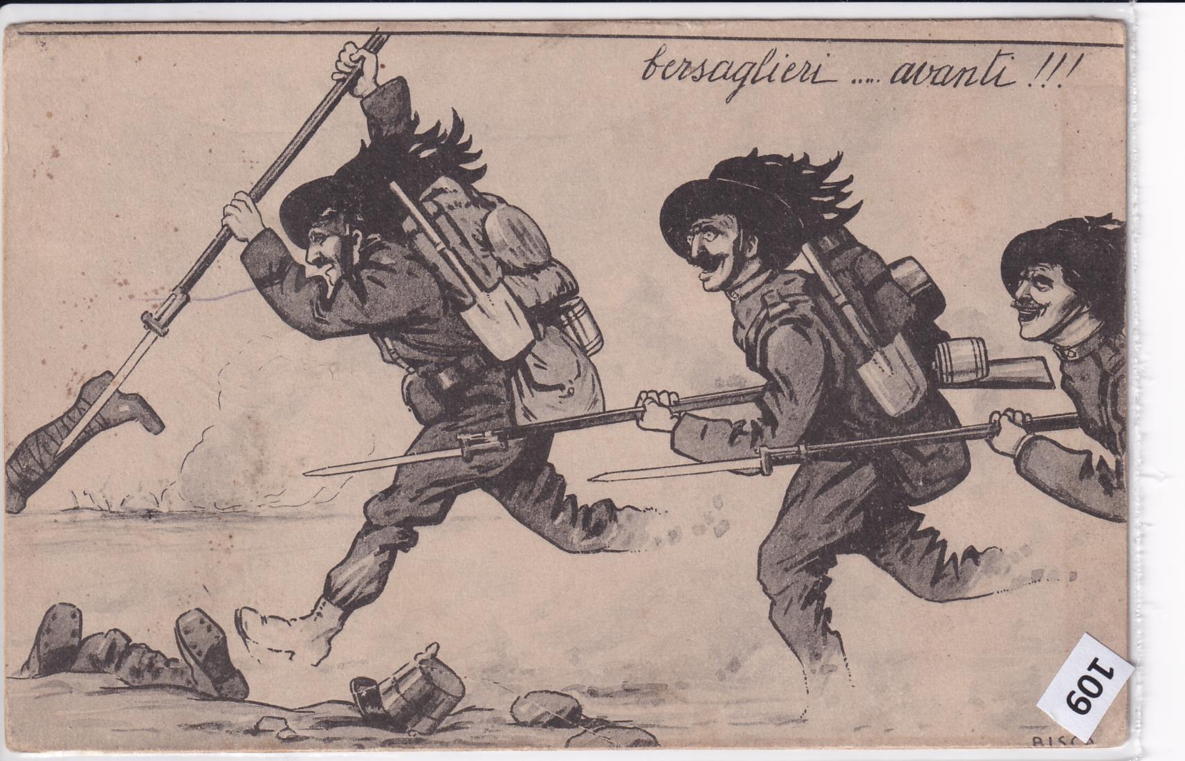 Cartolina satirica d’epoca BERSABLIERI… AVANTI!!