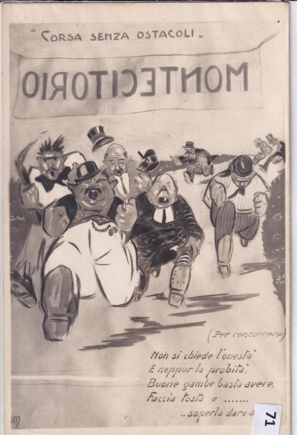 Cartolina satirica d’epoca CORSA SENZA OSTACOLI MONTECITORIO