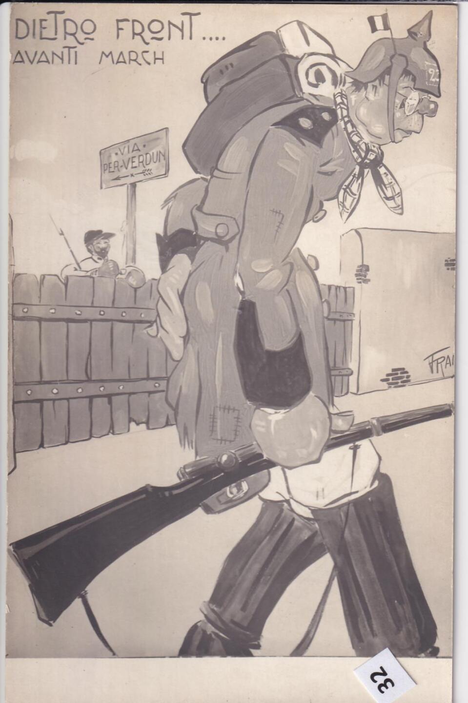 Cartolina satirica d’epoca DIETRO FRONT… AVANTI MARCH