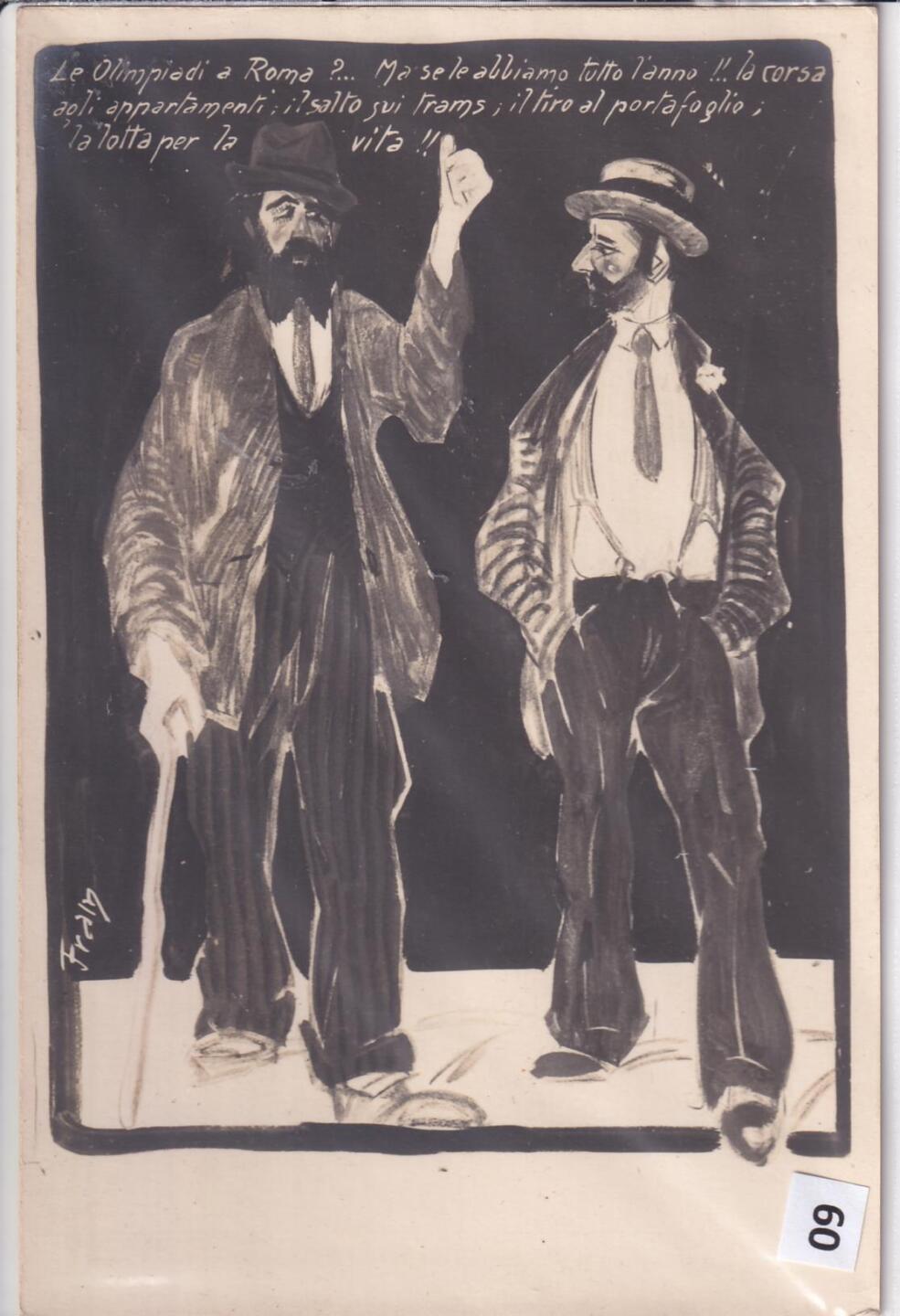 Cartolina satirica d’epoca LE OLIMPIADI A ROMA? MA SE LE ABBIAMO TUTTO L’ANNO!