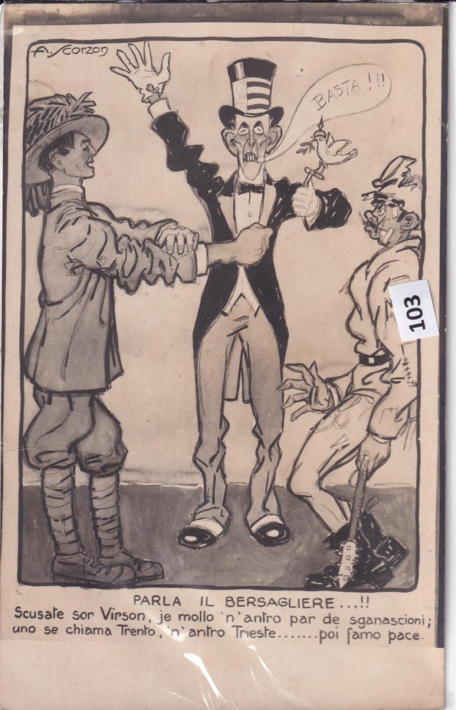 Cartolina satirica d’epoca PARLA IL BERSAGLIERE