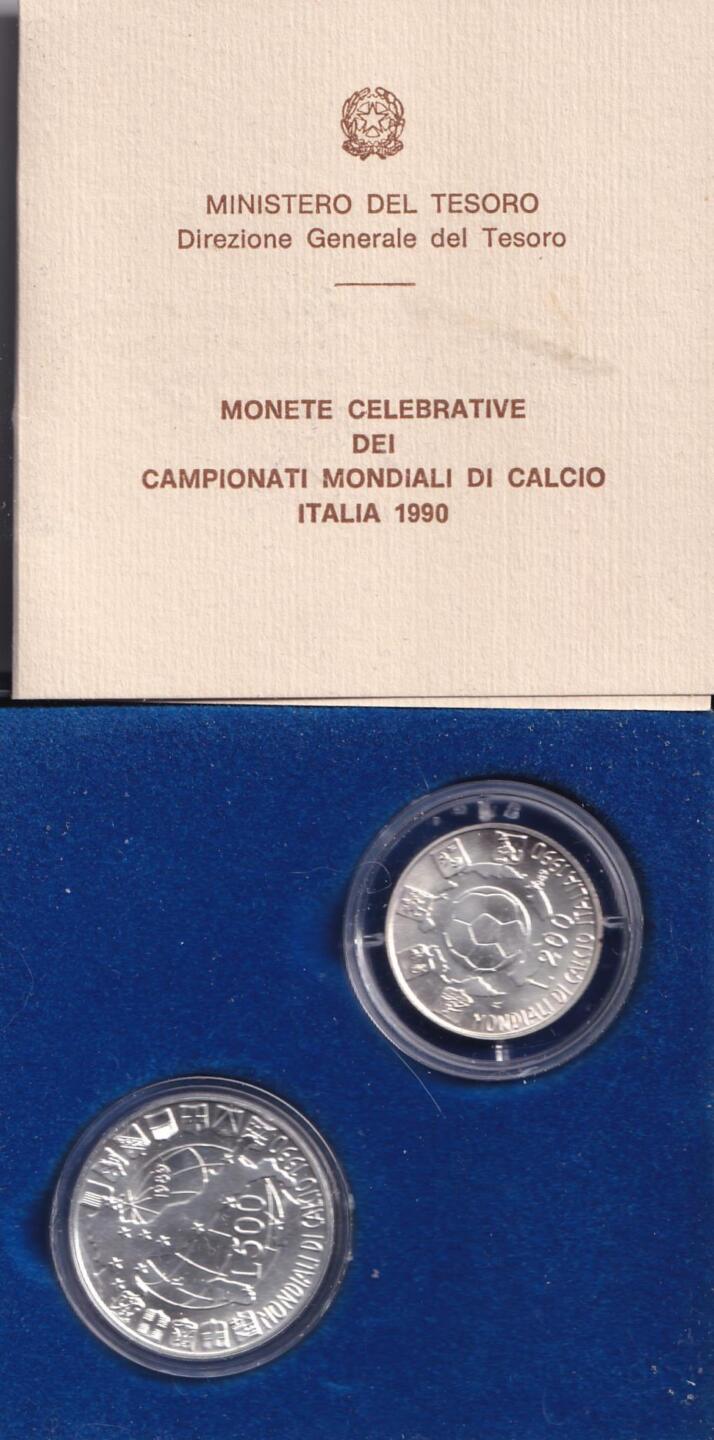 Moneta da Lire 500 e Moneta da Lire 200 in argento celebrative dei Campionati mondiali di Calcio Italia 1990