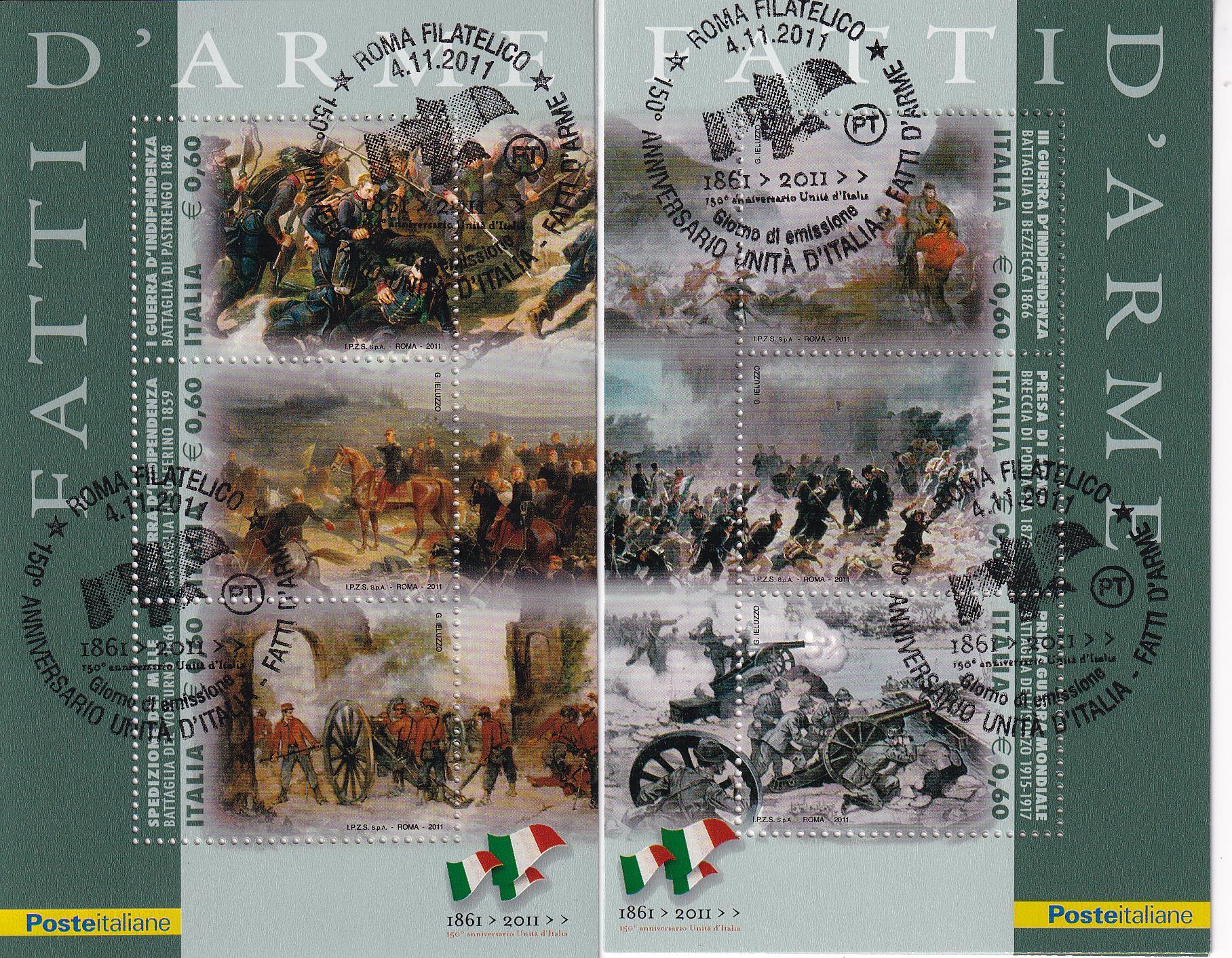 Foglietti Italia Anno 2011 Unità d’Italia Fatti d’arme (BF n. 72-73) con Annullo speciale