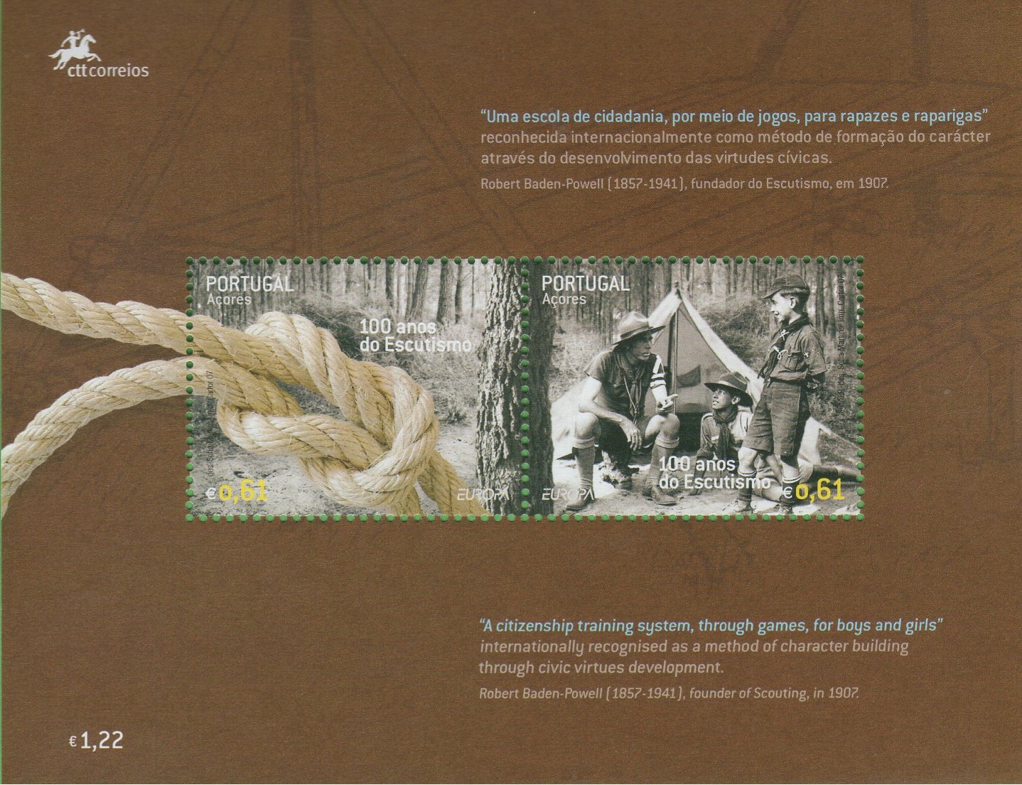 Foglietto Azzorre Anno 2007 Europa 100 anni di scoutismo (BF 33)