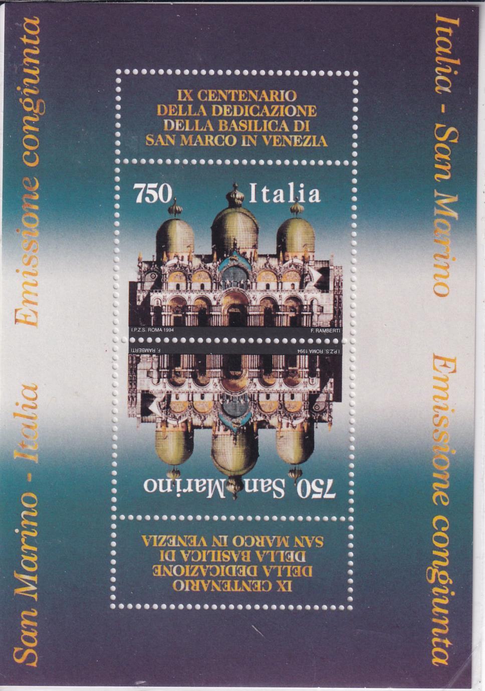 Foglietto Italia Anno 1994 Il patrimonio artistico e culturale italiano Nono centenario della dedicazione della Basilica di San Marco Venezia
