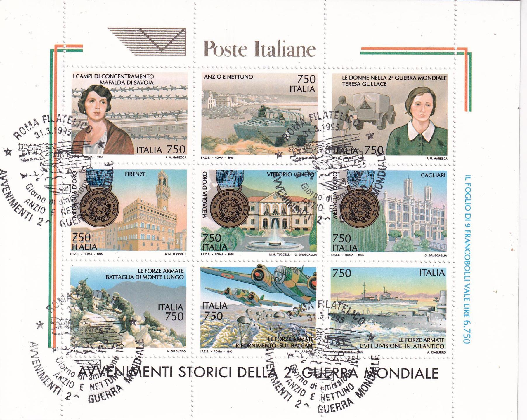 Foglietto Italia Anno 1995 Avvenimenti storici Seconda Guerra Mondiale (BF. n. 16) con Annullo speciale