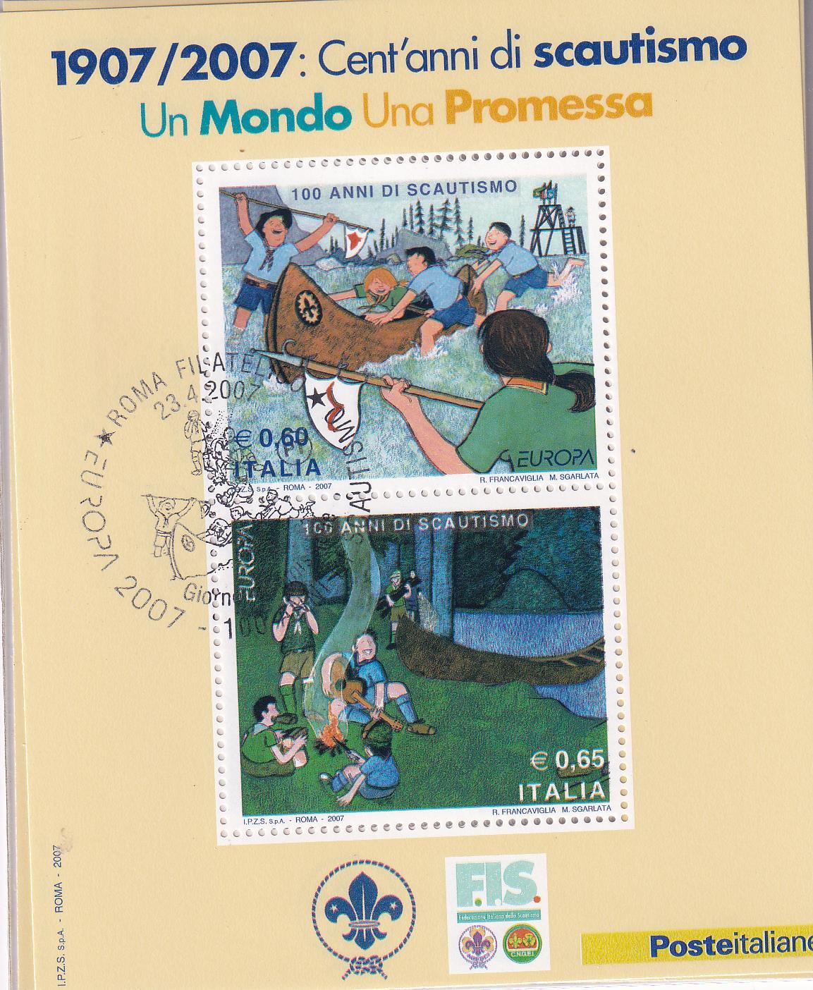 Foglietto Italia Anno 2007 Cento Anni di Scoutismo (BF n. 44) con Annullo speciale