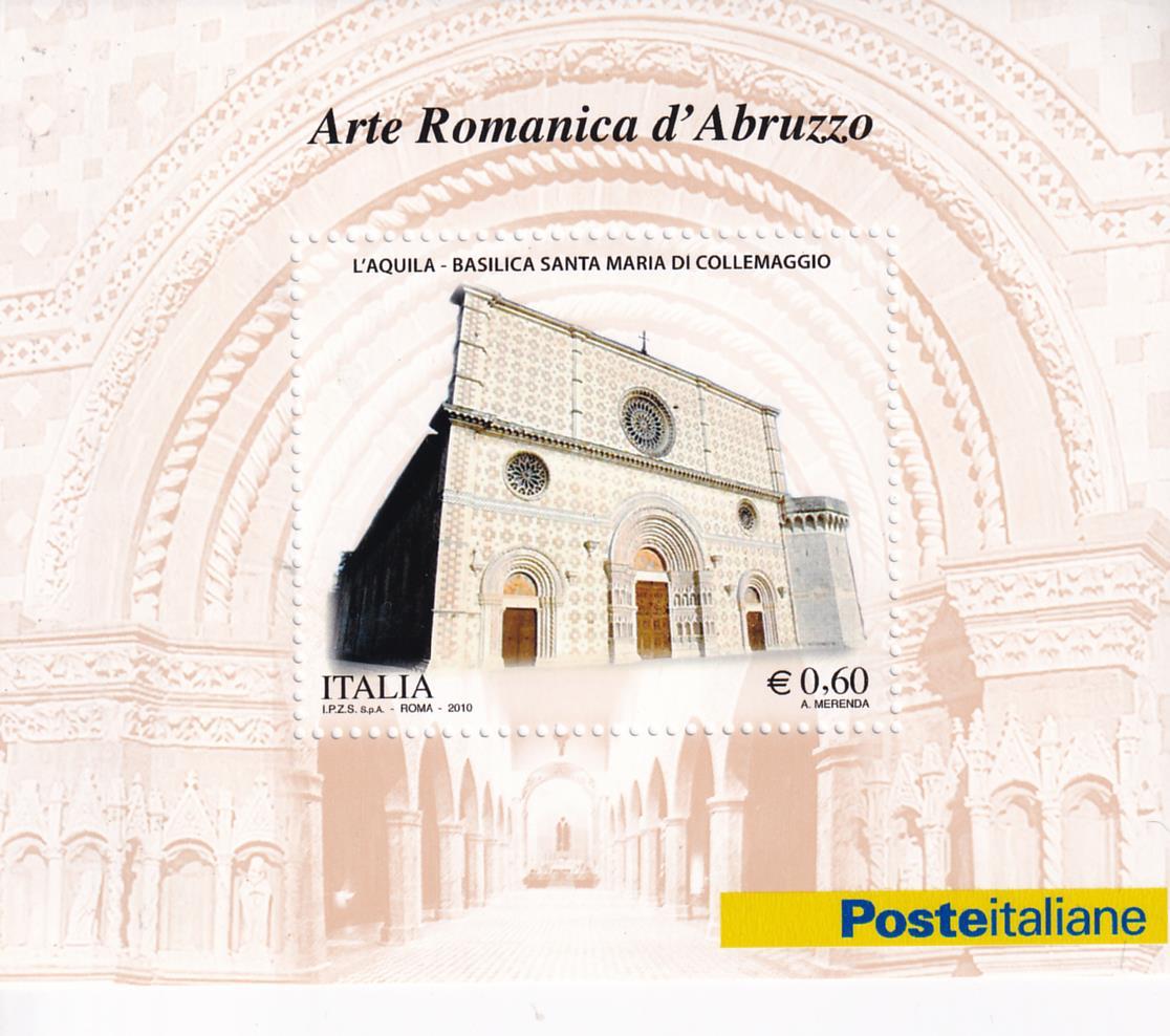 Foglietto Italia Anno 2010 Il patrimonio artistico e culturale italiano Arte romanica d’Abruzzo Basilica Santa Maria di Collemaggio