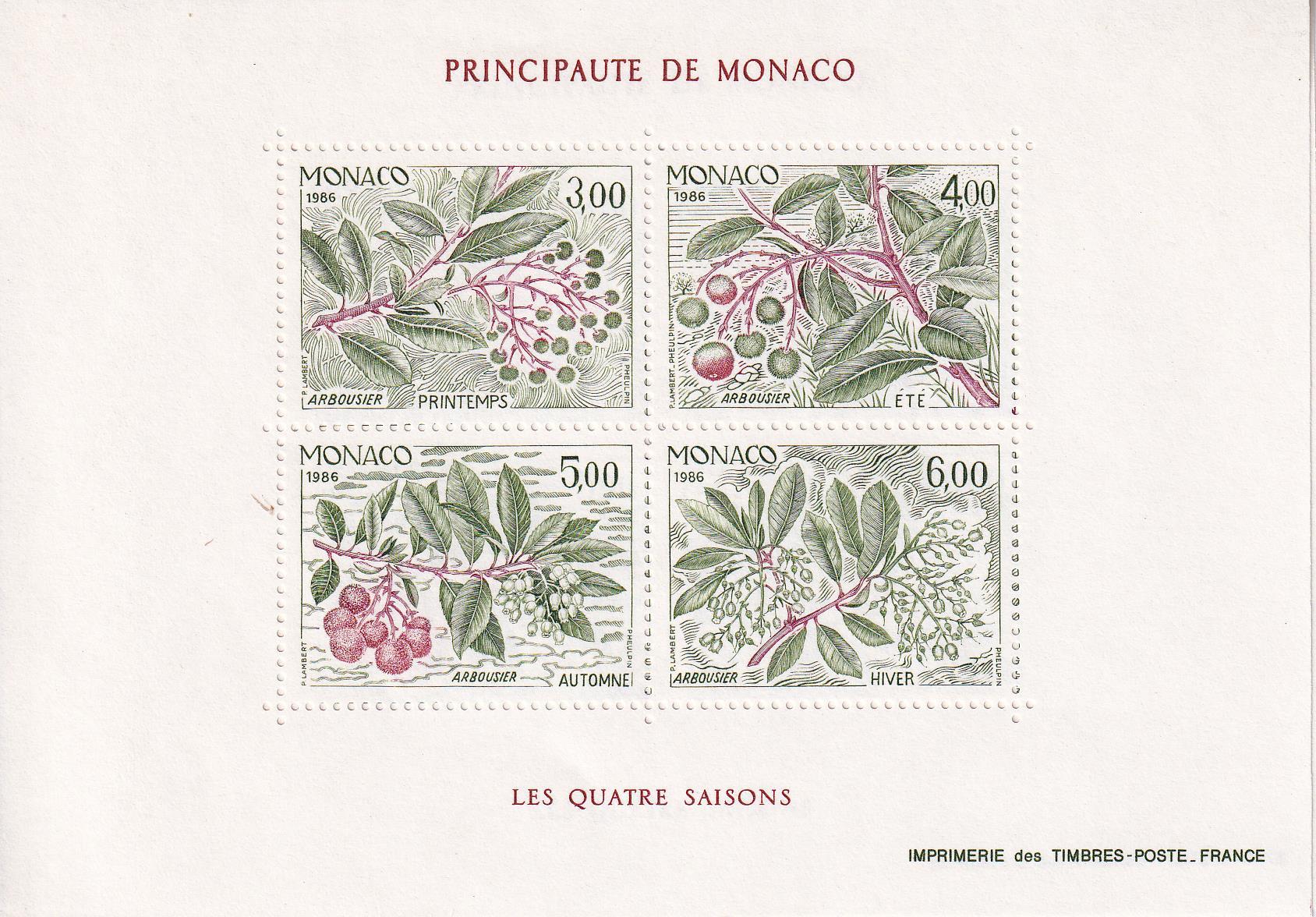 Foglietto Monaco Anno 1986 Le quattro stagioni del corbezzolo