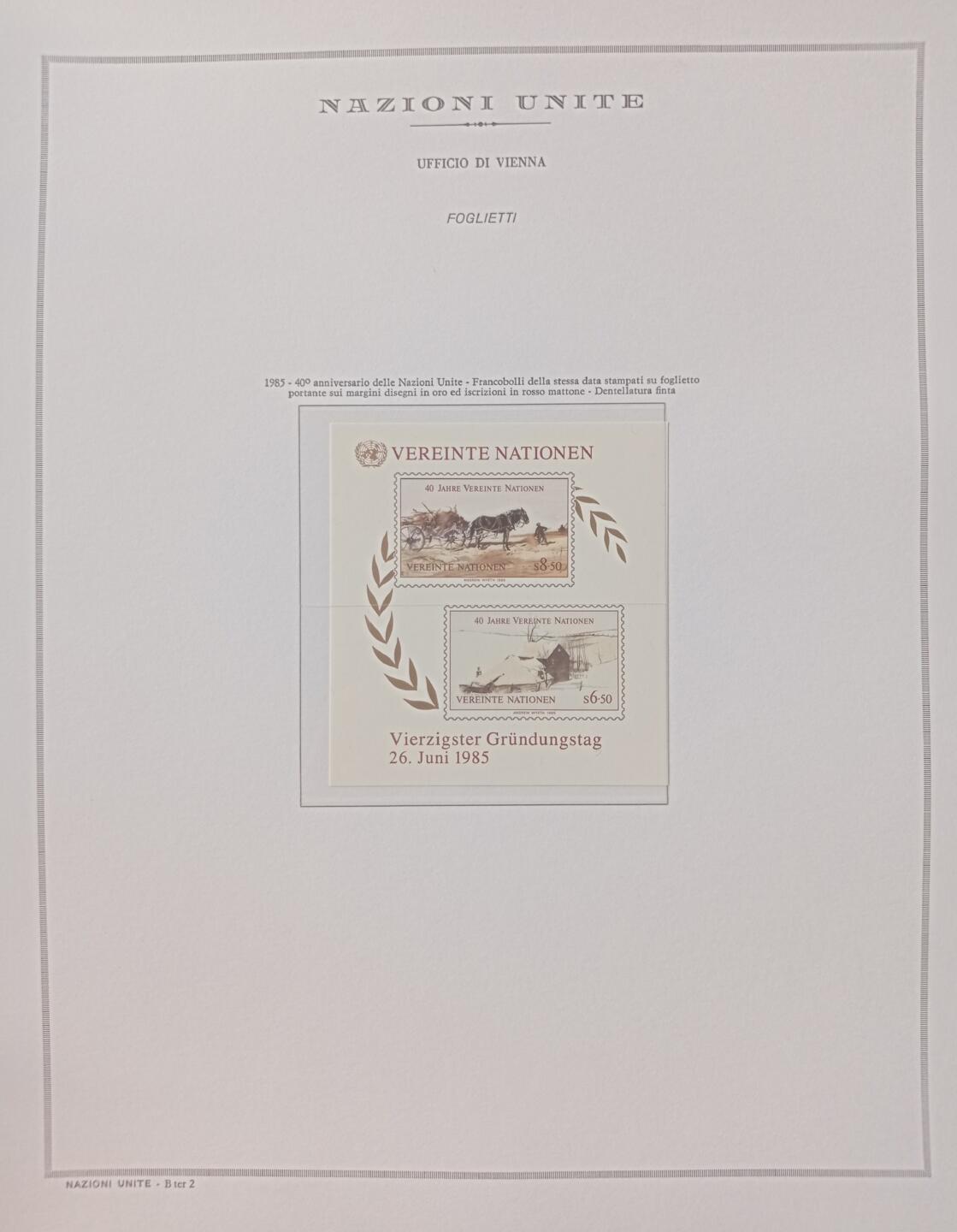 Foglietto Nazioni Unite – Ufficio di Vienna Anno 1985 40esimo anniversario delle Nazioni Unite Montato su foglio Marini King usato (il foglio King è in omaggio)