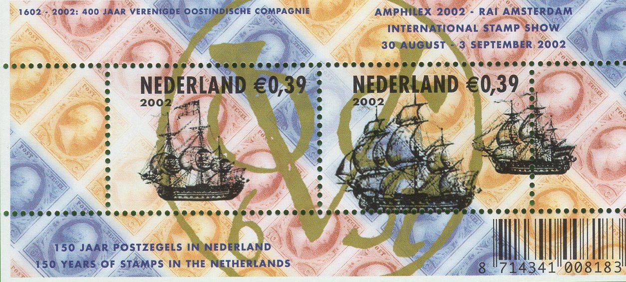 AMPHILEX 2002 Esposizione filatelica Amsterdam Terza serie 150esimo anniversario dei primi francobolli olandesi e quarto centenario della fondazione delle VOC (Compagnie delle Indie Olandesi)