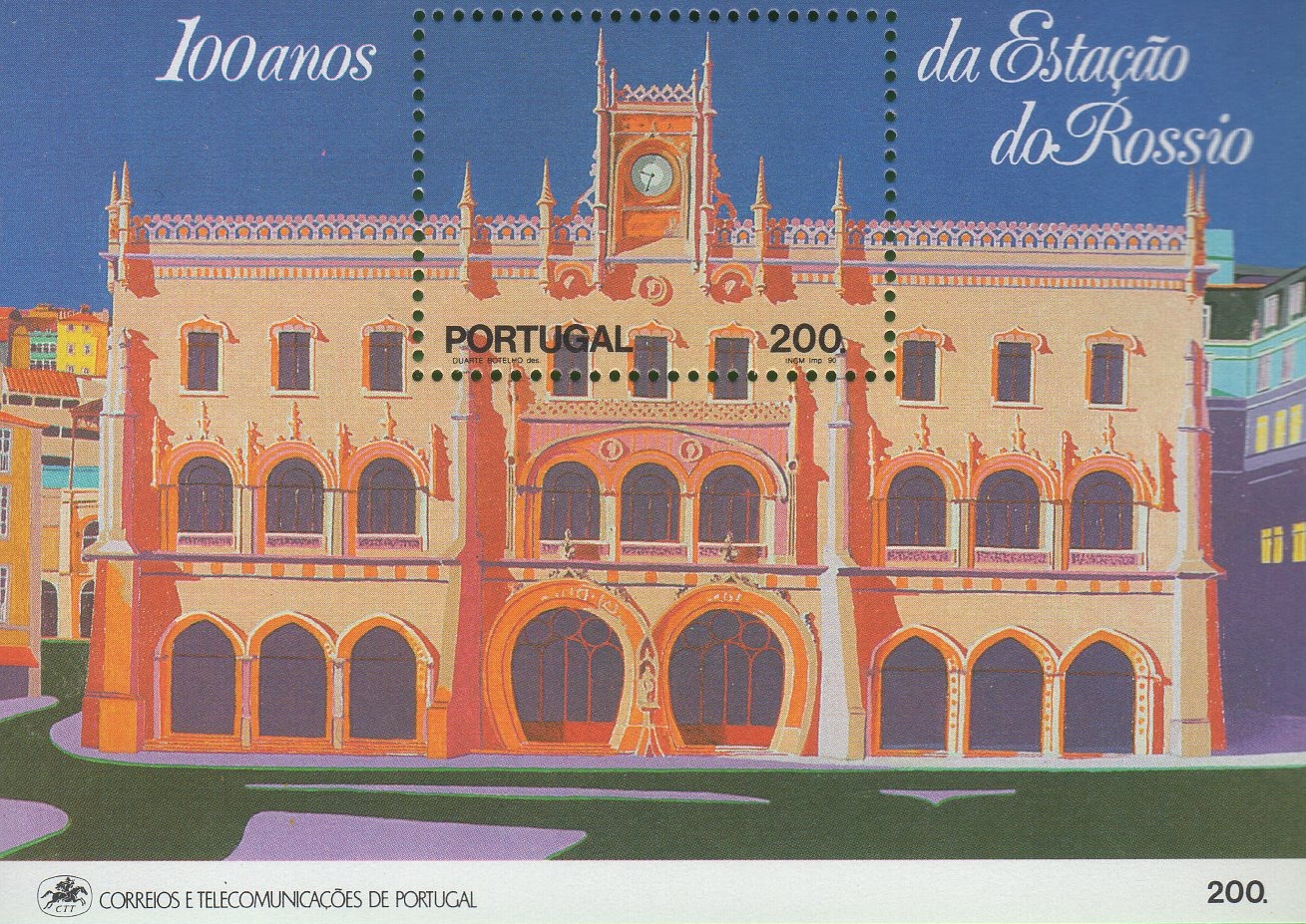 Foglietto Portogallo Anno 1990 Centenario della stazione di Rossio (BF 76)