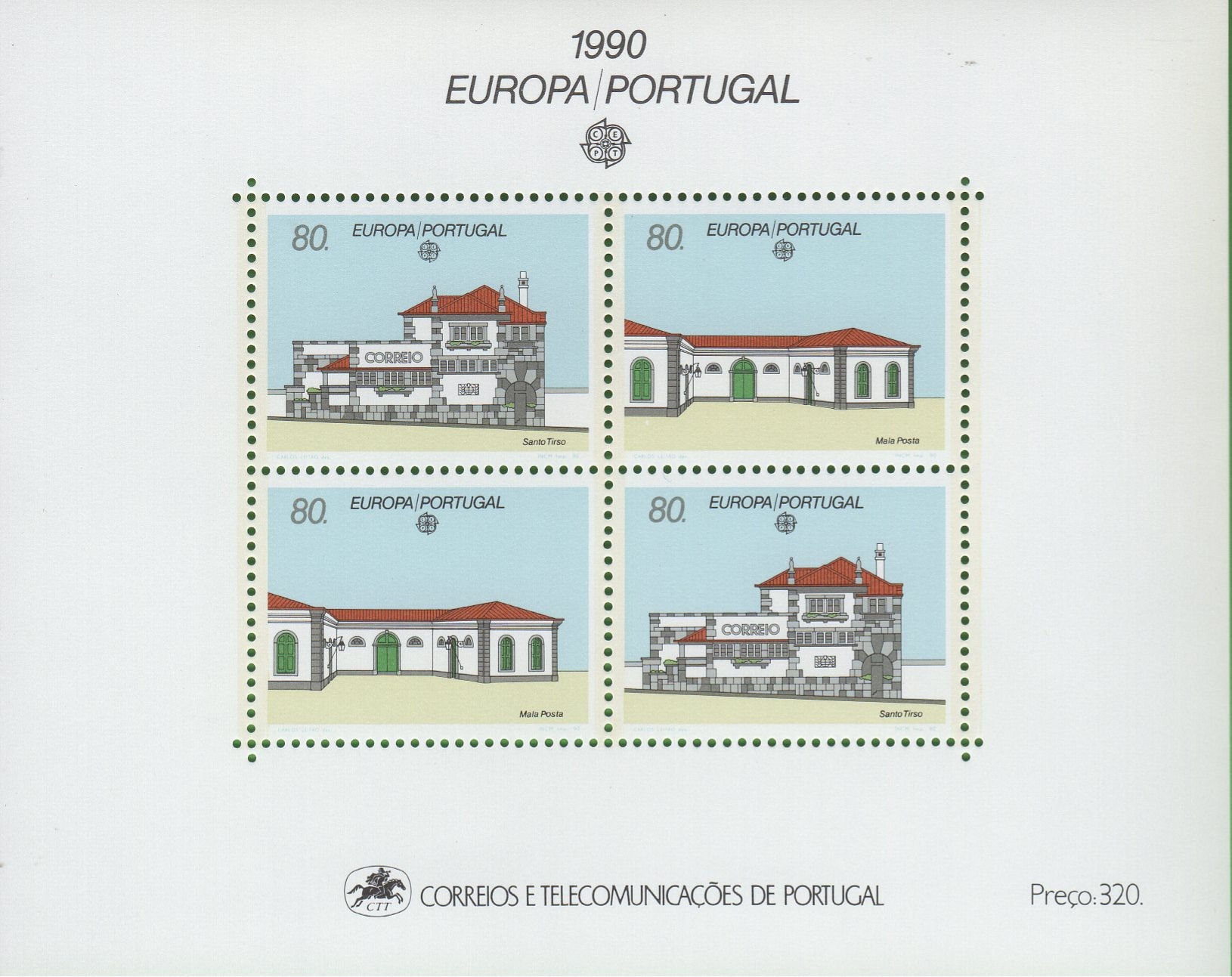 Foglietto Portogallo Anno 1990 Europa Edifici postali di ieri e di oggi (BF 72)