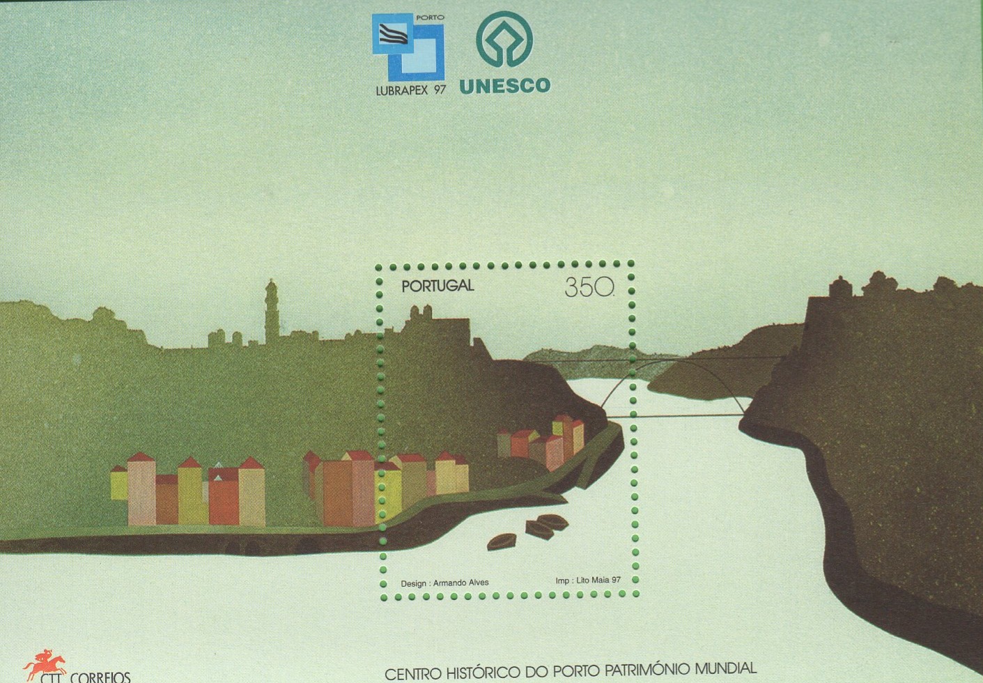 Foglietto Portogallo Anno 1997 UNESCO Patrimonio mondiale Il centro storico di Porto Lubrapex 97 (BF 128)